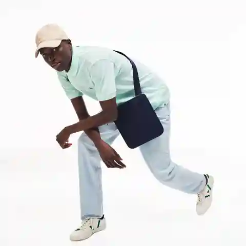 Inspired by the refined Lacoste legacy, this matte piqu leather bag features a fabric shoulder strap. Snap up this elegant piece right away.