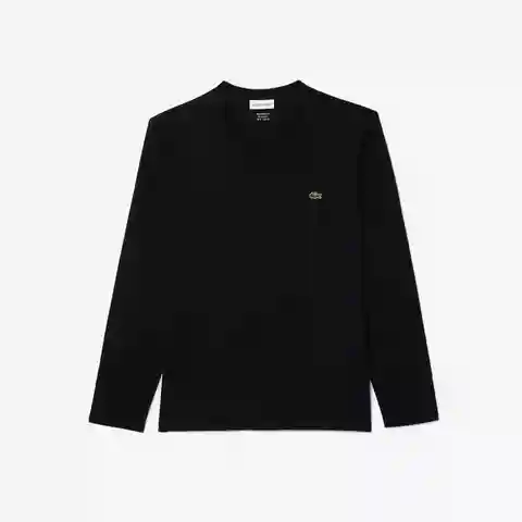 Treat yourself to the high quality, softness, and durability of pima cotton with this solid-color long-sleeve t-shirt. A small, refined V-neck and a contemporary fitted cut complete this new style. Keep things comfortable by combining it with a down jacket.