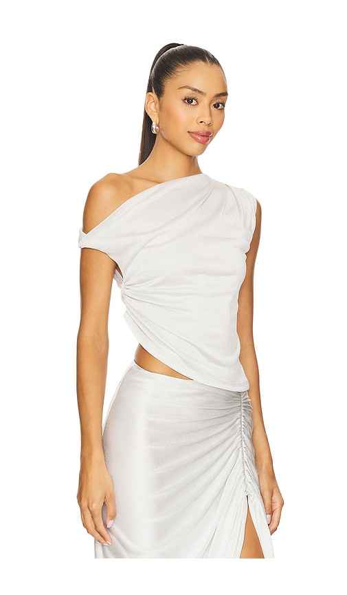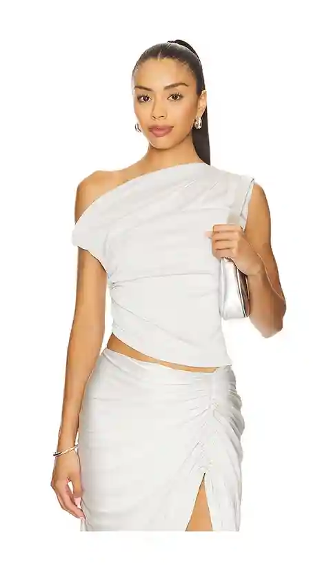 LAMARQUE Evonne Top in Metallic Silver. - size L (also in S, XS, XXS) LAMARQUE Evonne Top in Metallic Silver. - size L (also in S, XS, XXS) Self: 86% acetate 14% matallic Lining: 100% polyester. Made in China. Hand wash cold. Pull-on styling. Ruffled slinky knit fabric with metallic threading. Ite...more