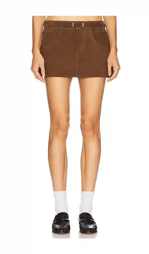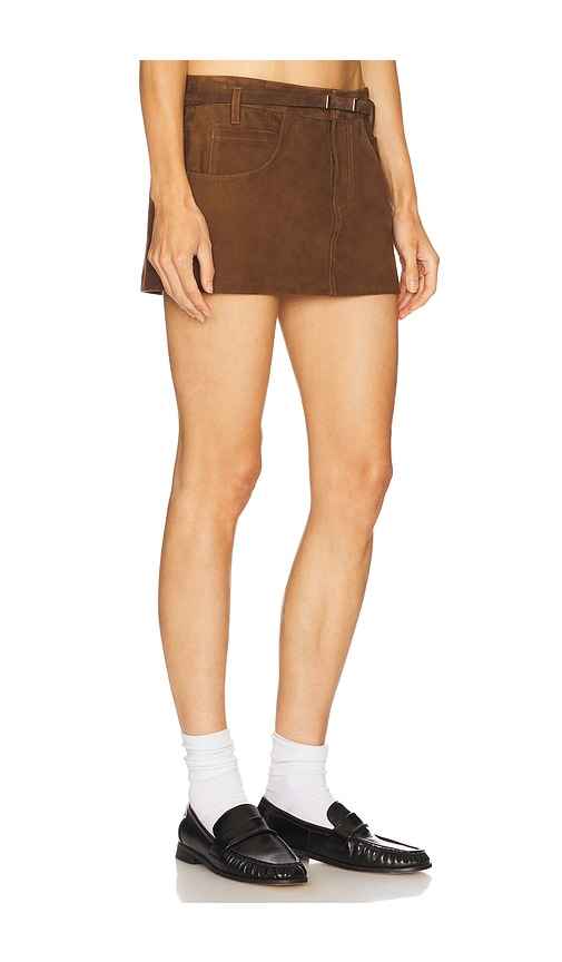 LAMARQUE x REVOLVE Amara Skirt in Brown. - size L (also in M, S, XS) LAMARQUE x REVOLVE Amara Skirt in Brown. - size L (also in M, S, XS) Self: 100% goat suede Lining: 97% polyester 3% spandex. Professional leather clean only. Fully lined. Zip fly with double hook and bar closure. Detachable belt wi...more