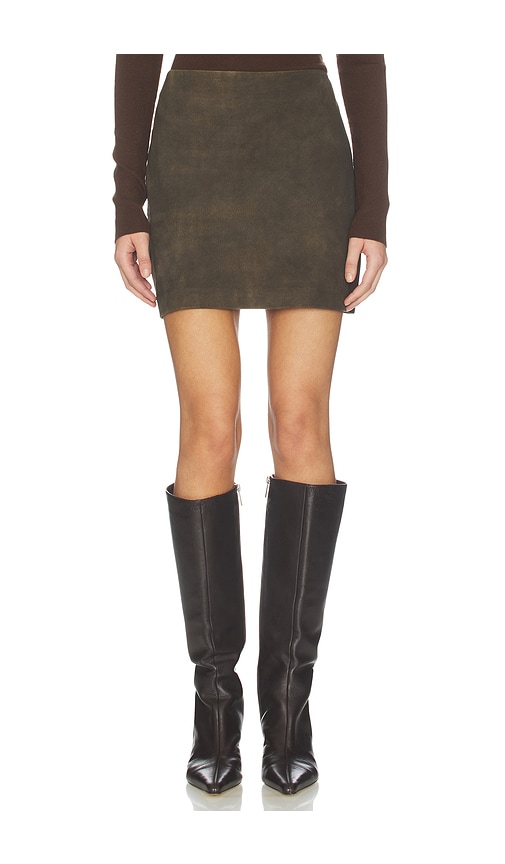 LAMARQUE Jorden Skirt in Brown. - size L (also in S, XS, M) LAMARQUE Jorden Skirt in Brown. - size L (also in S, XS, M) Midweight suede textile. Made in India. Dry clean recommended. Fully lined. Back zip and button closure. Midweight suede textile. Skirt measures approx 15.5 in length. LARX-WQ89. J...more