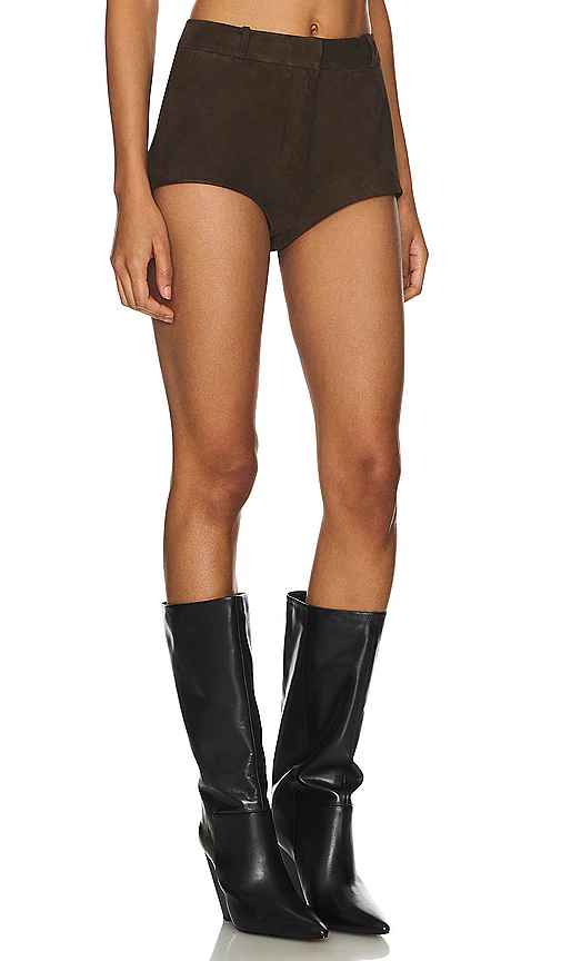 LAMARQUE Annaise Suede Short in Brown. - size XL (also in L, M, S, XS) LAMARQUE Annaise Suede Short in Brown. - size XL (also in L, M, S, XS) 100% goat suede. Made in India. Dry clean only. Zip fly with hook and bar closure. Shorts measure approx 11.50 in length. LARX-WF25. ANNAISE. LAMARQUE special...more