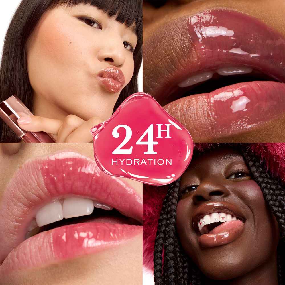 Its more than just a treat for your lips! Our jumbo lip-hugging applicator is specifically designed to contour your lips and provide instant juicy shine with 24H hydration. After 2 weeks of daily use, bare lips feel smoother and look bouncier. WHAT IT IS: A 3D juicy shine oil-in-gloss that juicifies...more