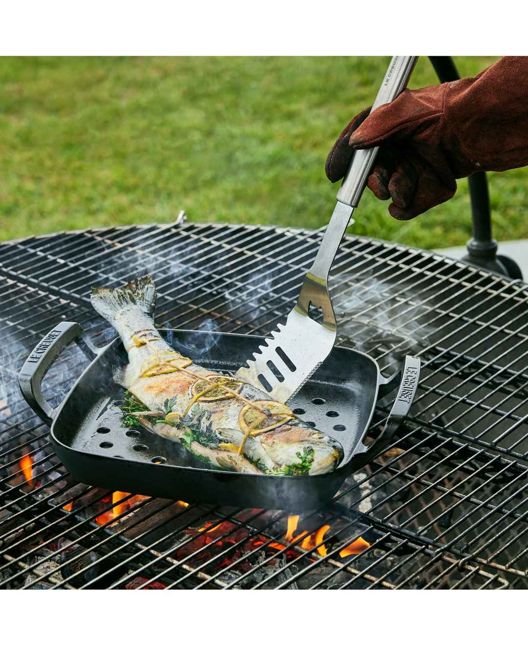 An essential for steaks on the grill or pancakes on the griddle, this slotted turner from Le Creuset's Alpine Collection is long enough to handle the heat, with a thin front edge that easily slides under even delicate fish. It's a hard-working multi-tasker that also functions as a grill cleaner and ...more
