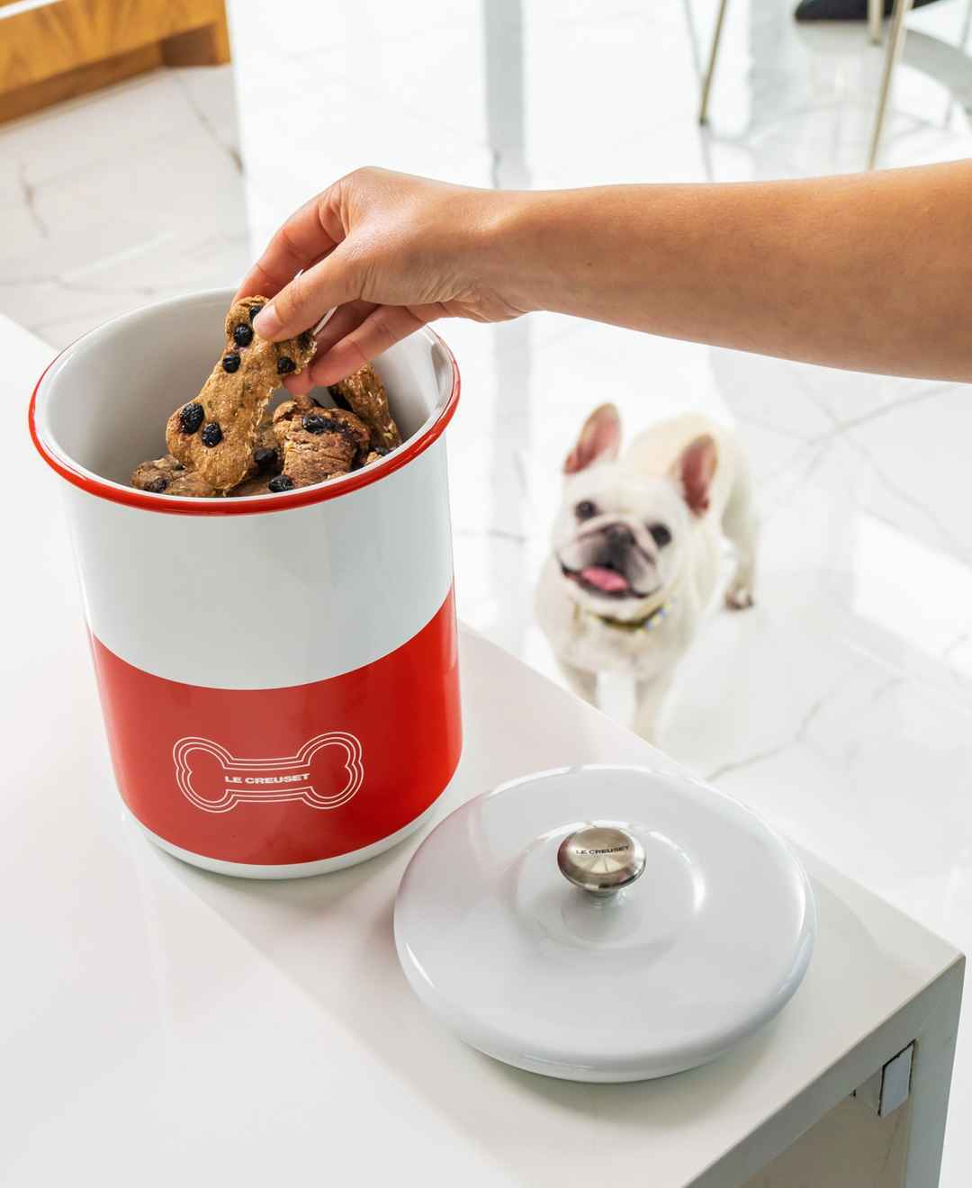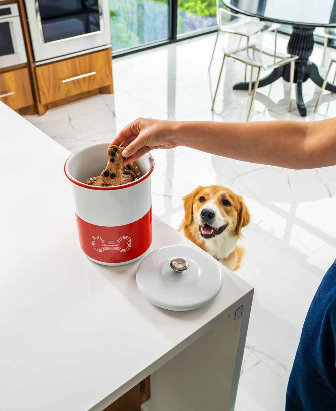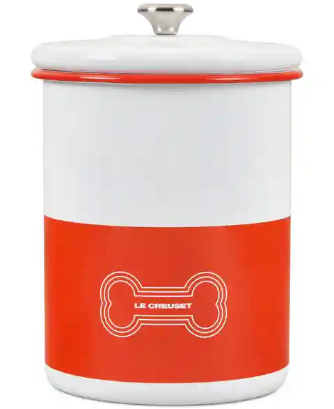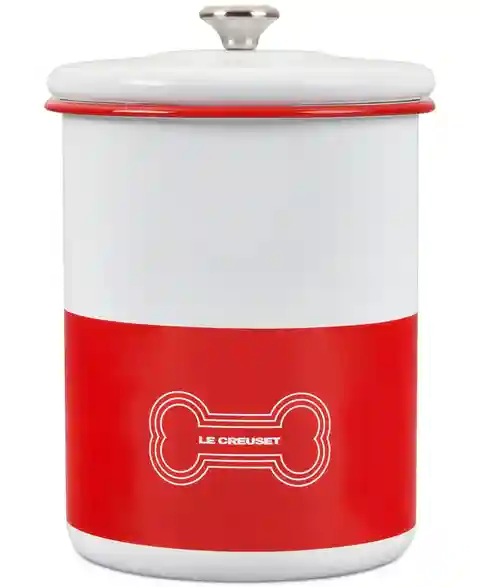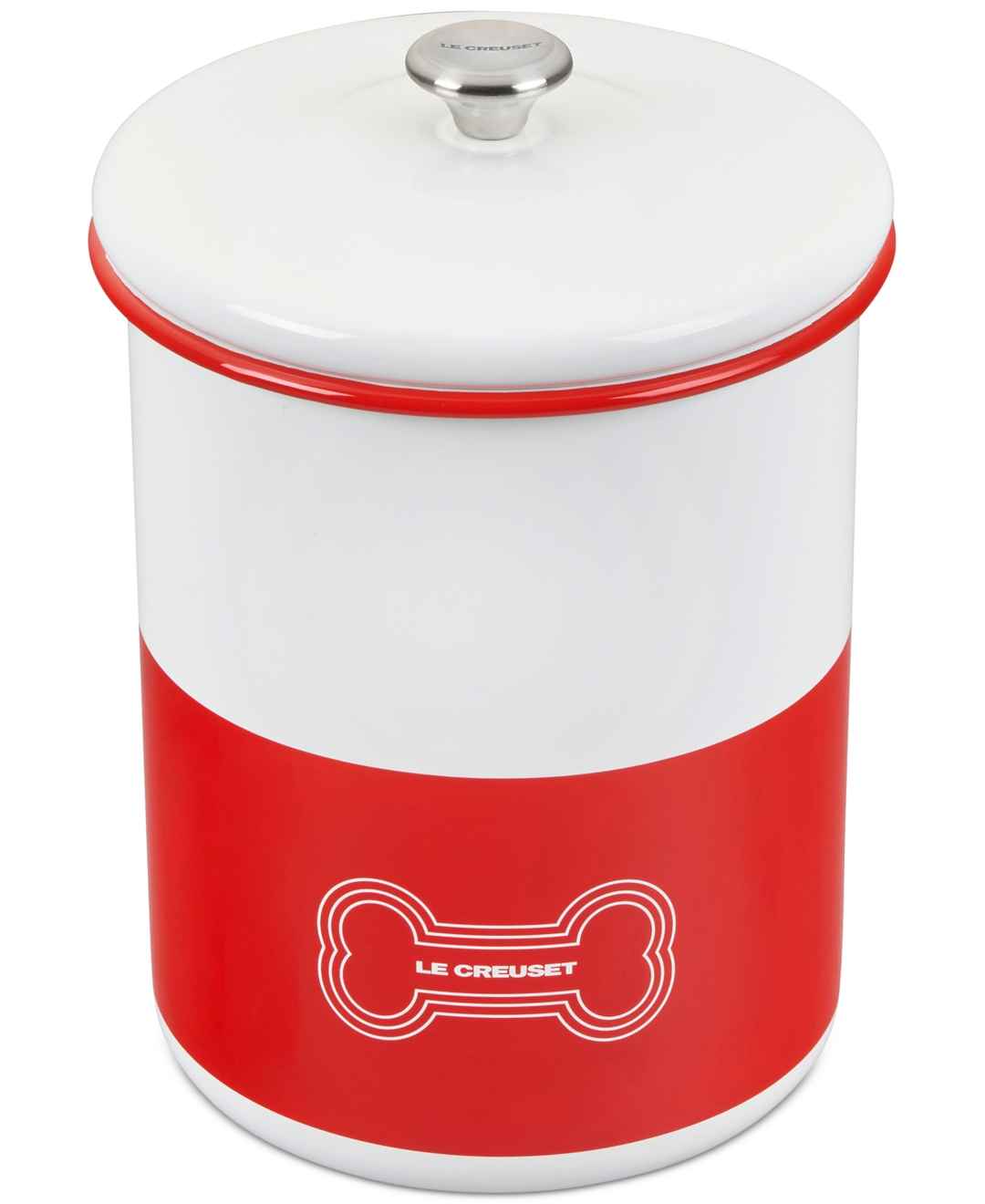 It won't take them long to learn to come running when they hear you lift the lid of this stylish treat jar from Le Creuset. In durable carbon steel with a stylish porcelain enamel finish, it keeps 4.25 quarts of your pet's favorite snacks fresh.