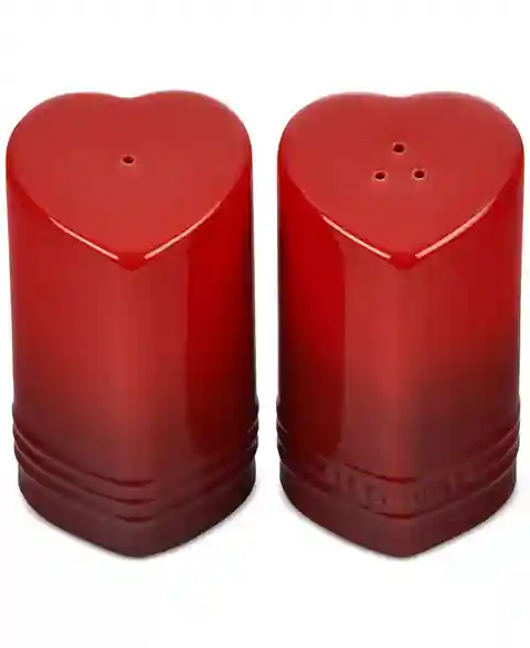 Colorful and fun, these salt and pepper shakers from Le Creuset are in premium stoneware with a vibrant glaze that resists chips and scratches. The heart-shaped pair adds instant festivity to any meal.