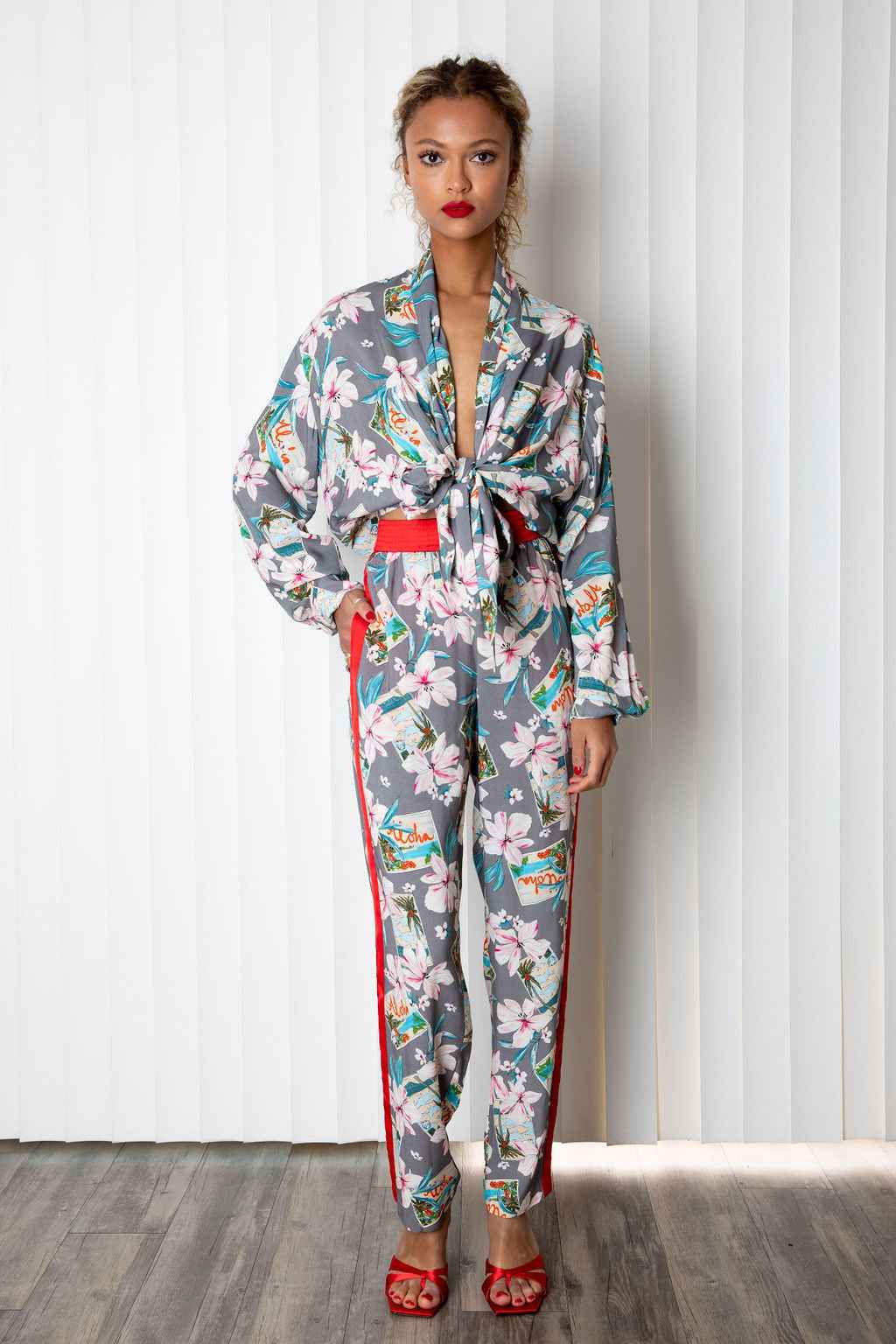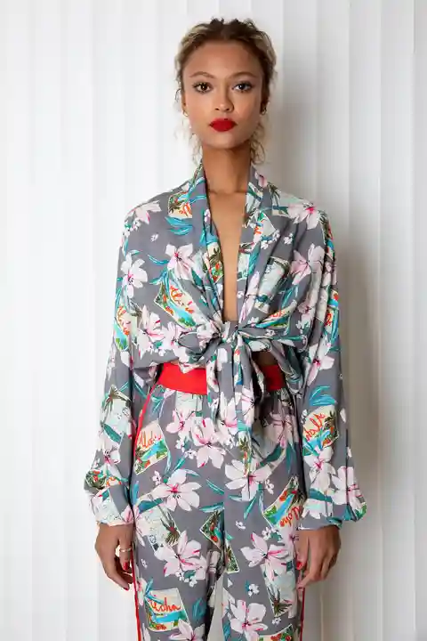 So soft and so cool in 100% viscose, our Topper Shirt is easy peasy when worn with your favorite pair of faded jeans and flip-flops. Ties in the front and features a graceful voluminous sleeve. We love the Aloha Postcard print shown here in Fog. Look closely and youll see our greetings from the big ...more