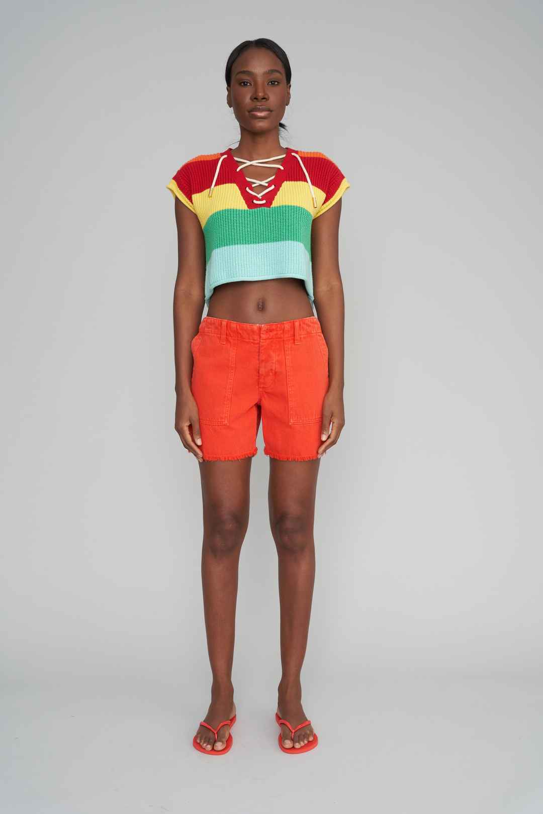 A tried-and-true silhouette in overdyed 100% cotton army twill, our Beach Crawler Short makes a return appearance this season in vibrant summer hues. An easy, flattering fit, patch front pockets, and a raw edge. They are made for afternoons in the sun. Great with a tee, of course, but were loving th...more
