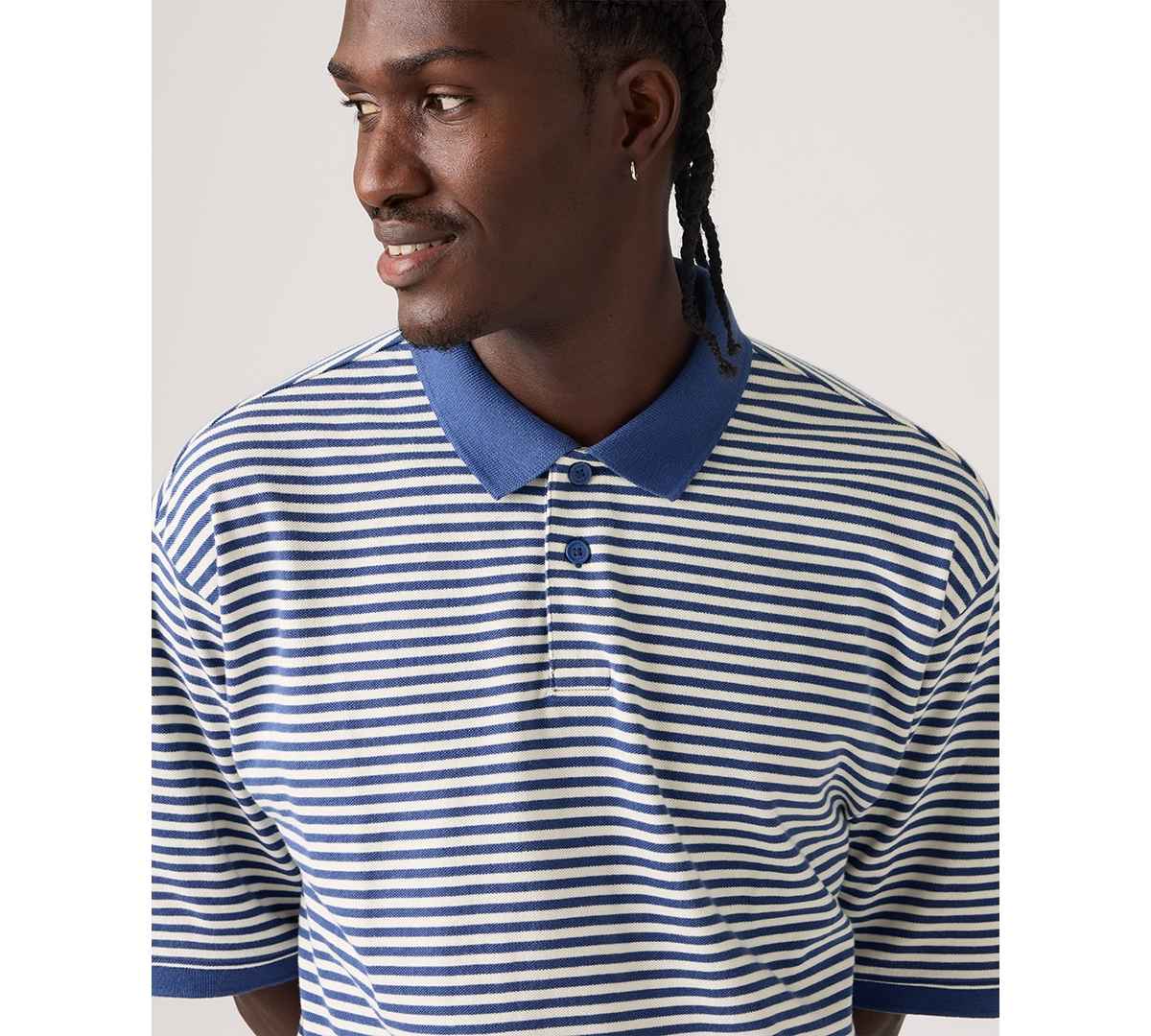 Levi's Men's Boxy Striped Collared Polo Shirt - Blue