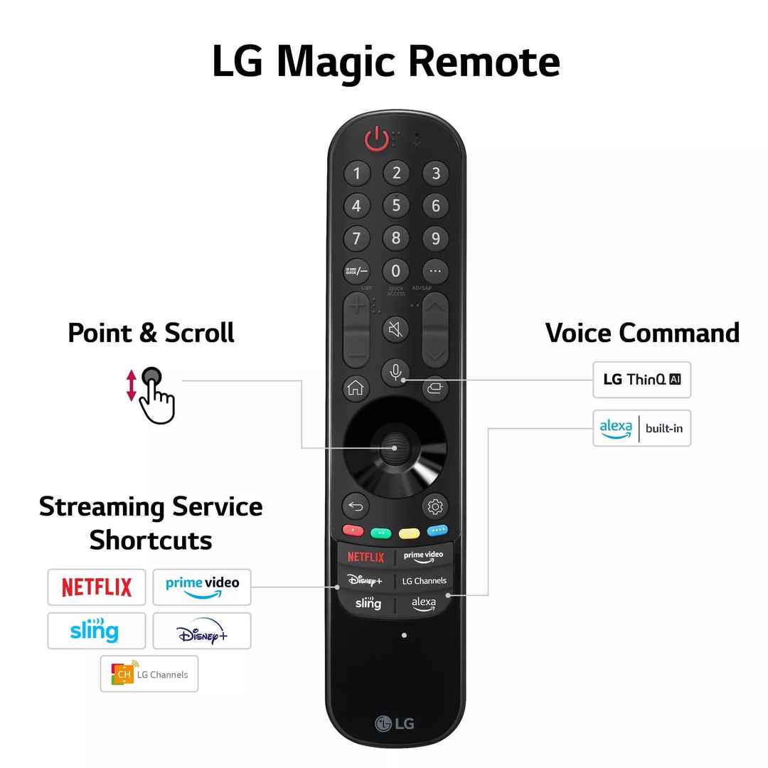 Features LG unique wide color gamut technology, Beautiful picture, powered by the a5 AI Processor Gen6, Smart TV with Magic Remote and over 300 free channels of entertainment, Home Cinema (Filmmaker Mode), Advanced Gaming , AI 4K upscaling lets you see everything in 4K | LG 55" Class QNED75 series L...more