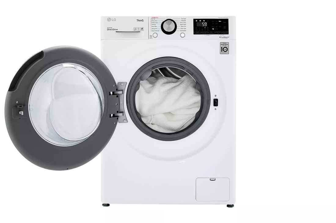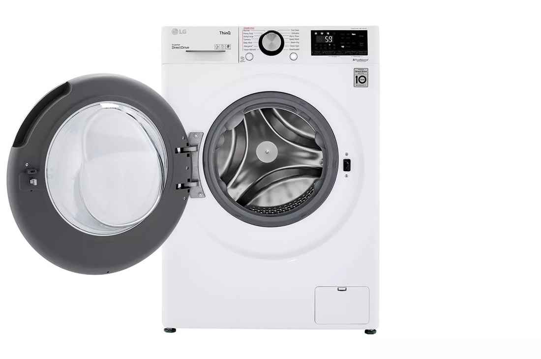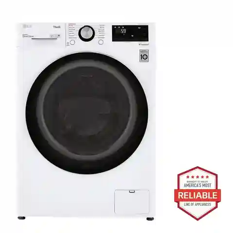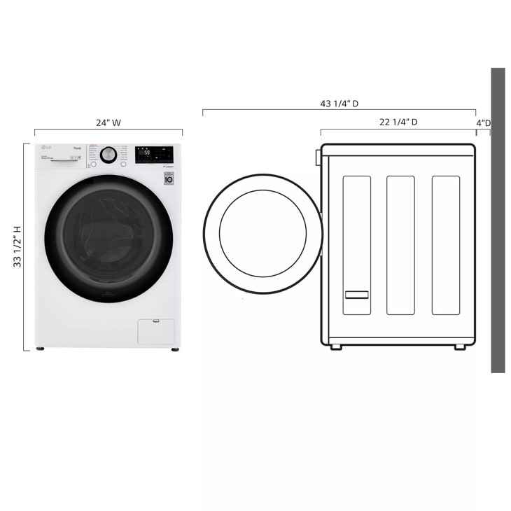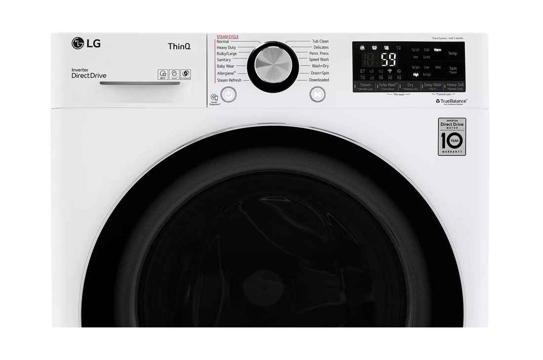 Generous 2.4 cu. ft. capacity gets the job done, with a compact size and closet depth design, Built-in intelligence takes out the guesswork technology selects optimal wash settings, AAFA certified LG washer with the Allergiene Cycle uses the power of steam to deep clean , Get the ThinQ app to access...more