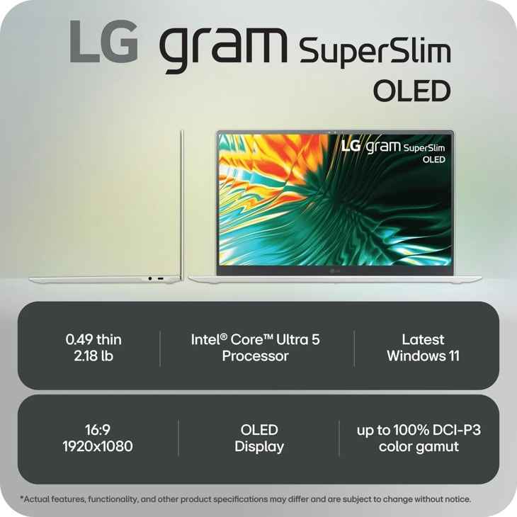 LG gram SuperSlim 15.6" OLED Thin and Lightweight Laptop, Intel Evo Edition- AI-enabled Intel Core Ultra 5 processor, Windows 11 Home, 16GB RAM, 51