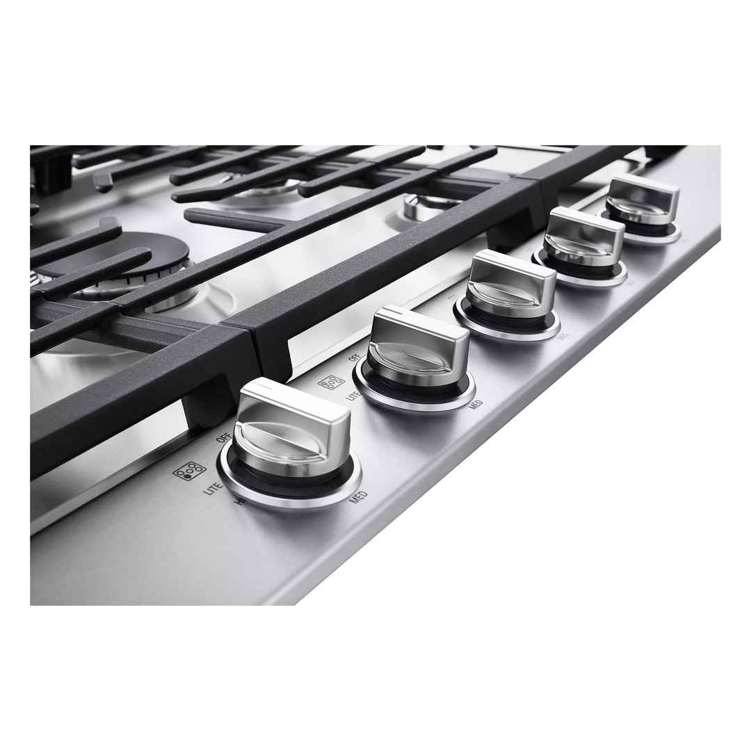 UltraHeat 20K BTU burner for rapid boiling and true simmering, Continuous cast iron grates provide even heating and stability for your cookware, Wipe away stains with ease thanks to the specially coated EasyClean surface, Auto Reignition automatically reignites the burners if the flame accidentally ...more