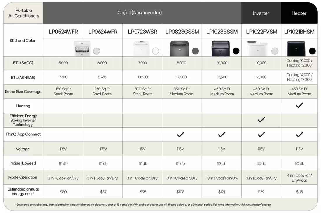 Cool down your desired space with this 7, 000 BTU (SACC) / 10, 500 BTU (ASHRAE) Air Conditioner, Stay comfortable with this LG Air Conditioner that cools up to 300 square feet, Bring your LG Portable Air Conditioner anywhere you need it with the easy to roll caster wheels, Make temperature adjustmen...more