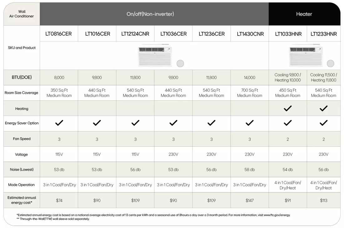 Cool down your desired space with this 8, 000 BTU Air Conditioner, Stay comfortable with this LG Air Conditioner that cools up to 330 square feet, Trim Kit included to help you set up with ease, Make temperature adjustments and fan speed selection on the easy to use control panel or remote, Reduce p...more