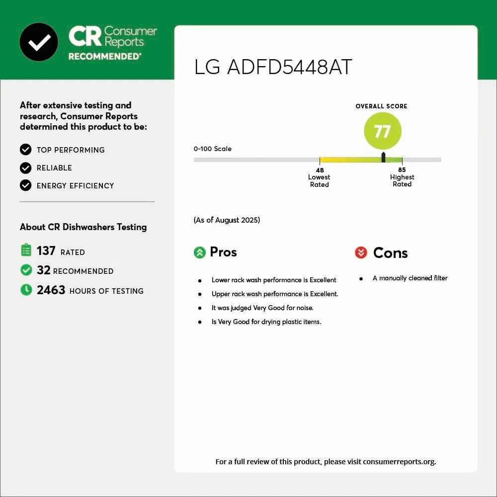 ThinQ Offer: Get an extra 1-year limited warranty (up to $185 value) through 12/31/24. Terms apply, The ThinQ app offers control & convenience to help you simplify life and enjoy the comforts of home, With four spray arms instead of just two, QuadWash technology cleans dishes from multiple angles, S...more