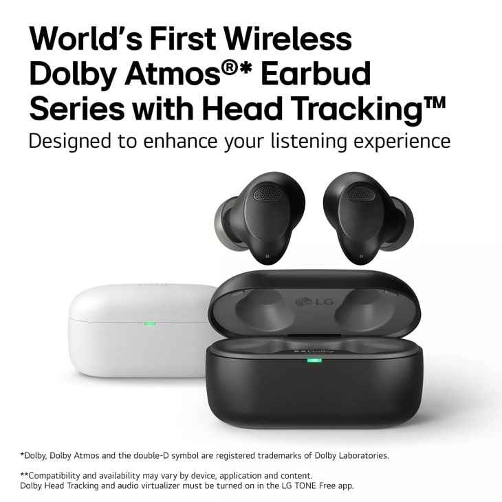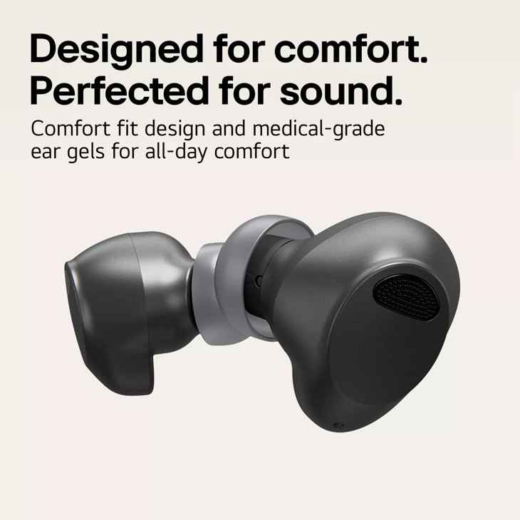LG T80S Wireless Bluetooth Earbuds TONE Free with Dolby Atmos, Black, Mirror Black