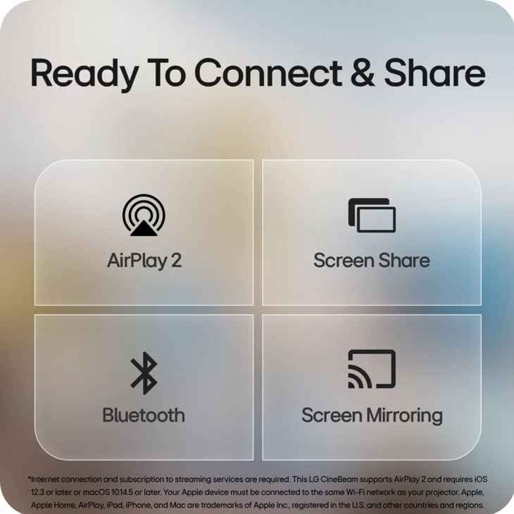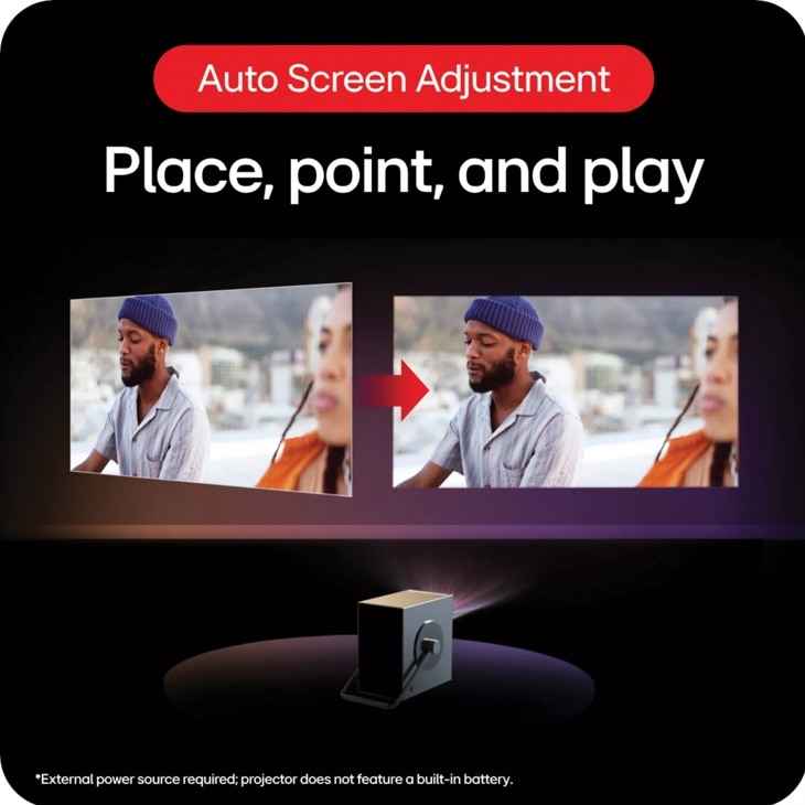 CineBeam Q automatically adjusts screen alignment and focus place and play, A portable design makes it easy to transport the 3lb projector anywhere with a power source, Enjoy sharp contrast and impeccable color with brilliant 4K resolution and a big 120" screen, Stream content on your favorite platf...more