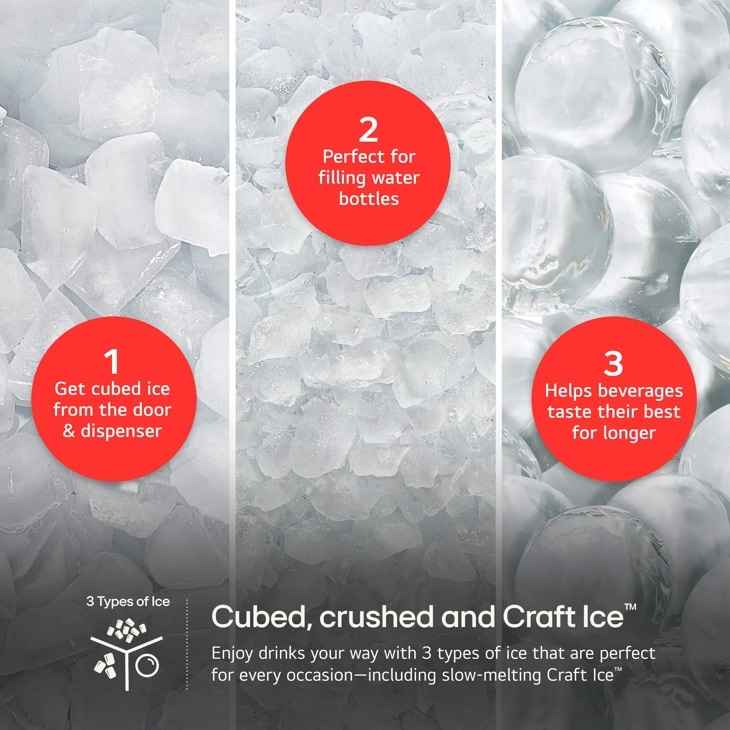 Zero Clearance hinges and thin door design lets you install the refrigerator in tight spaces and still fully open both doors., Sleek style you love and storage space you need in our largest-capacity Zero Clearance refrigerator., Dual ice makers automatically create standard ice cubes, crushed ice an...more