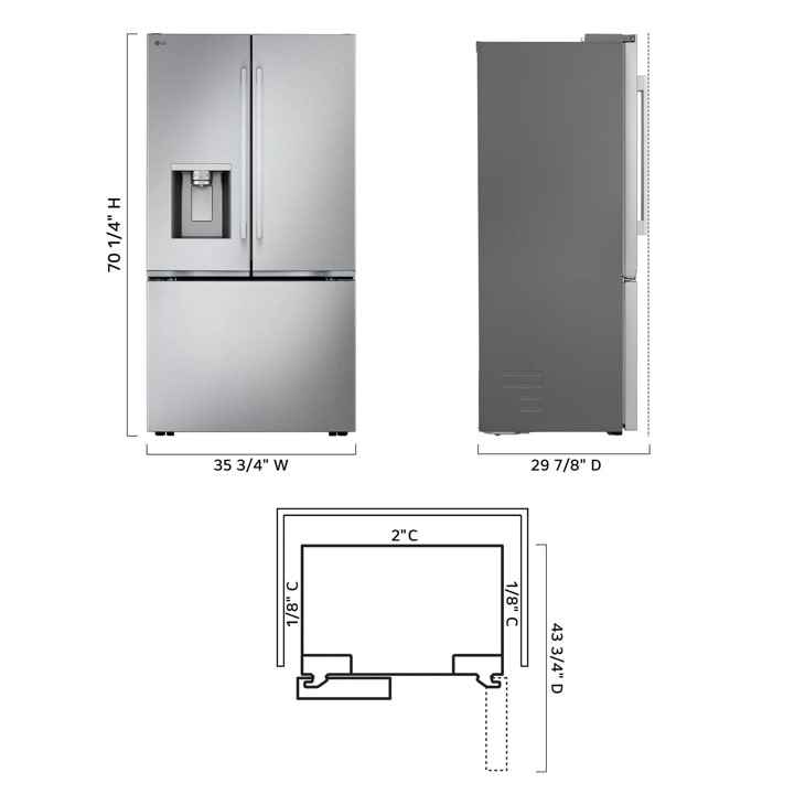 LG Counter-Depth MAX with Zero Clearance 3-Door French Door Refrigerator with Thin Door Design, Print Proof Stainless Steel
