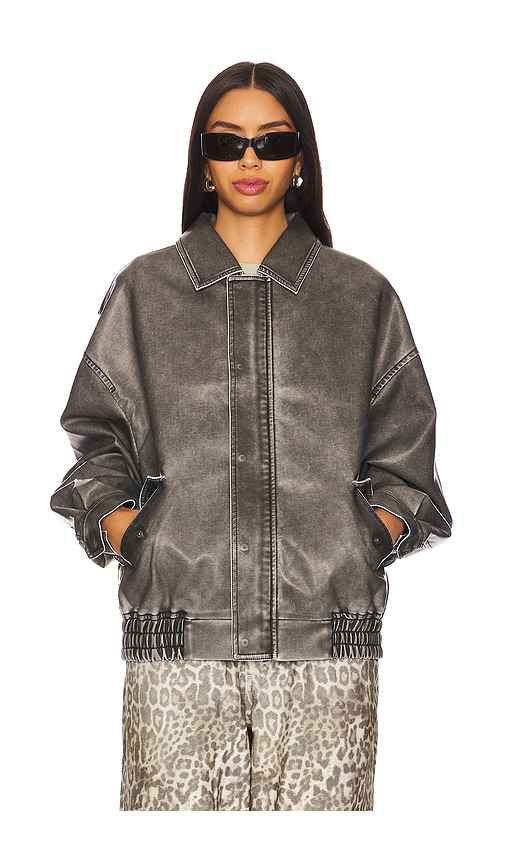 LIONESS Kenny Bomber Jacket in Slate. - size M (also in XS, XXS) LIONESS Kenny Bomber Jacket in Slate. - size M (also in XS, XXS) 55% polyurethane 45% polyester. Made in China. Hand wash. Front zip and snap closure. Front flap pockets with snap closure. LIOR-WO43. LC557-13-2404. Australian brand Lio...more