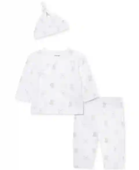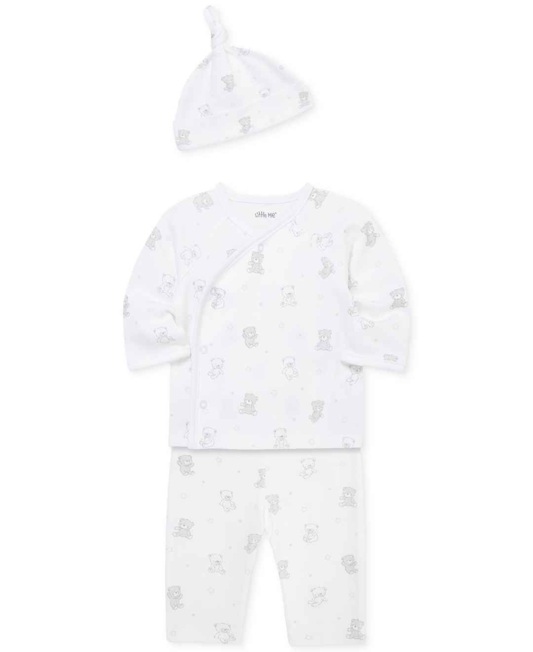 Little Me Baby Boys Bears Cotton Hat, Top & Pants Set - White