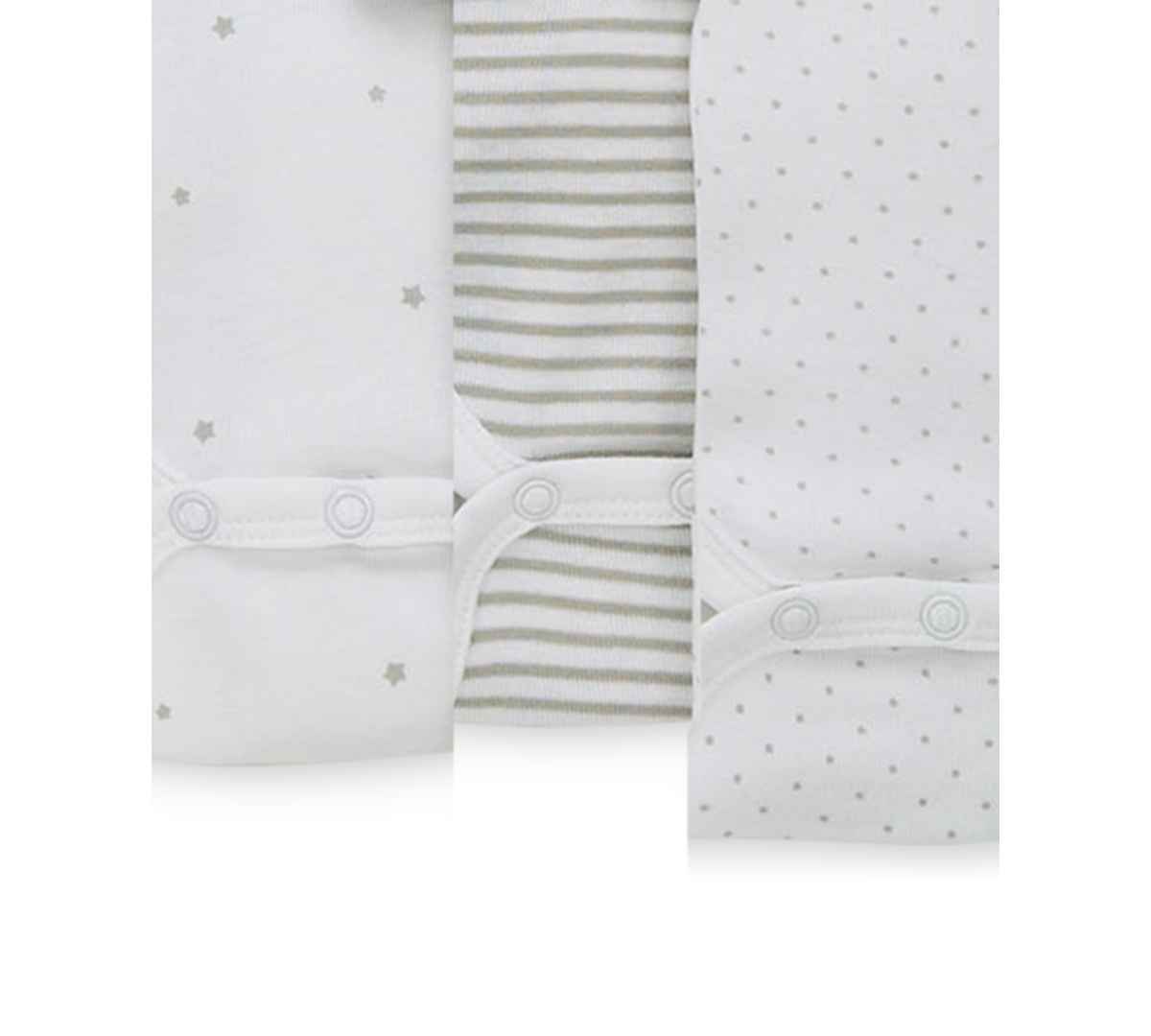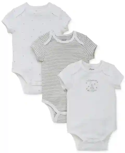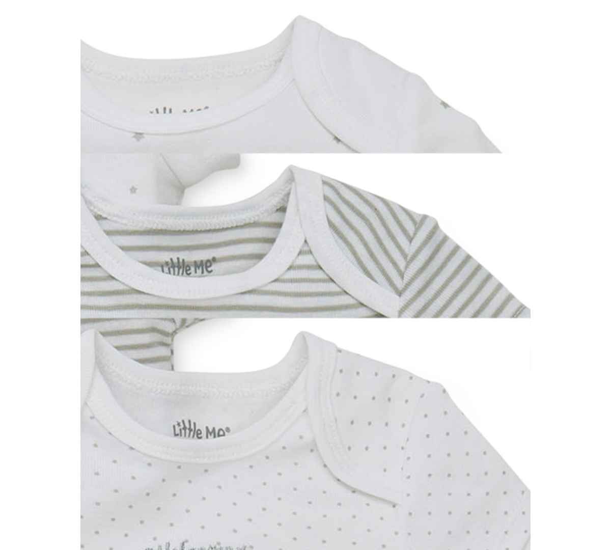 A trio of soft cotton bodysuits from Little Me coordinates beautifully with other pieces from their essential unisex collection.