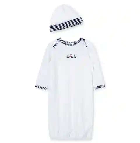 Little Me Baby Boys Sailboats Gown and Hat, 2 Piece Set - White