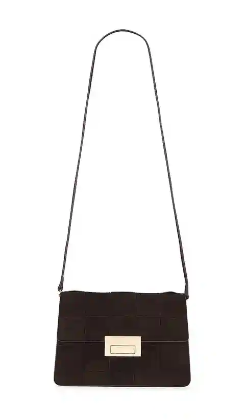Loeffler Randall Delphine Clutch in Brown. Loeffler Randall Delphine Clutch in Brown. Suede exterior with twill lining. Flap top with push lock closure. One main compartment. Interior slip pocket. Detachable suede shoulder strap. Measures approx 8.5 W x 6 H x 3 D Shoulder strap with a 17 drop. LOEF-...more