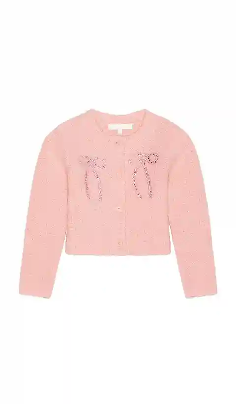 LoveShackFancy Kids Journelle Cardi in Pink. - size 2 (also in 3, 4, 5, 6) LoveShackFancy Kids Journelle Cardi in Pink. - size 2 (also in 3, 4, 5, 6) 52% wool 39% acrylic 8% nylon 1% elastane. Dry clean only. Front button closure. Rhinestone front graphic. Midweight knit fabric. LESH-GK3. CK258-2949...more