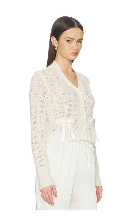 LoveShackFancy Lilly Cardigan in Ivory. - size L (also in M, S, XL, XS, XXS) LoveShackFancy Lilly Cardigan in Ivory. - size L (also in M, S, XL, XS, XXS) 47% Nylon, 34% Alpaca, 19% Wool. Dry clean. Exposed front button closure. Front bow detail. Pinhole detail throughout. LESH-WK167. K2083-2983. Lov...more