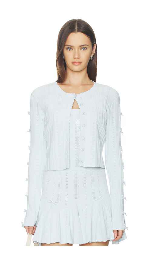 LoveShackFancy Zoriah Cardigan in Baby Blue. - size L (also in M, S, XS, XXS)