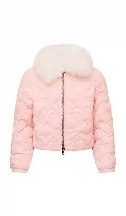 LoveShackFancy Kids Mini Sandria Jacket in Pink. - size 2 (also in 3, 4, 5, 6) LoveShackFancy Kids Mini Sandria Jacket in Pink. - size 2 (also in 3, 4, 5, 6) Self 1: 100% nylon Self 2: 100% polyester Lining: 96% polyester 4% spandex. Imported. Dry clean only. Front zipper closure. Heart motif embroi...more