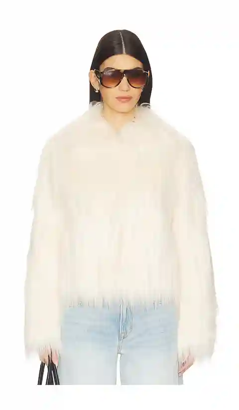 LoveShackFancy Fallon Faux Fur Jacket in Ivory. - size S (also in L, M, XL, XS, XXS) LoveShackFancy Fallon Faux Fur Jacket in Ivory. - size S (also in L, M, XL, XS, XXS) 64% Modacyrlic 19% Acrylic 17% Polyester 55% Polyester 45% Viscose. Dry clean. Front hook closure. LESH-WO34. LJ860-2719. LoveSh...more