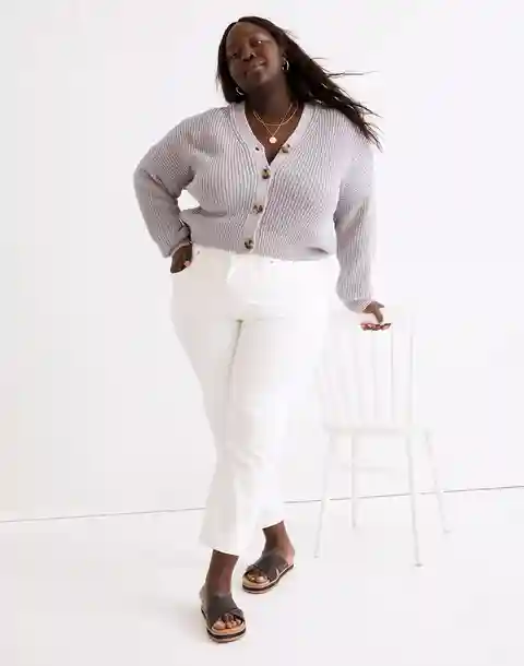 The cut: Reengineered for those with an hourglass shape, our tapered '90s supermodel momjeans have a narrower waist with a contoured band, a longer rise (for a rounder booty) and a little extra room at the hips and thighs. The fabric: Premium white denim with zero see-through and a touch of body-hug...more