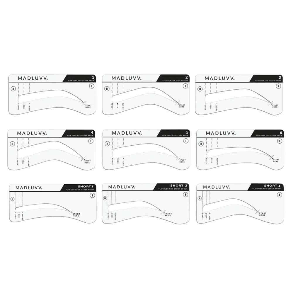 eCosmetics is an authorized retailer of Madluvv.Our deluxe set of eyebrow stencils is meticulously designed to cater to a variety of brow shapes, lengths, and sizes. With 9 different shapes to choose from, you'll find the perfect match for your unique style. Whether you prefer a nat...more
