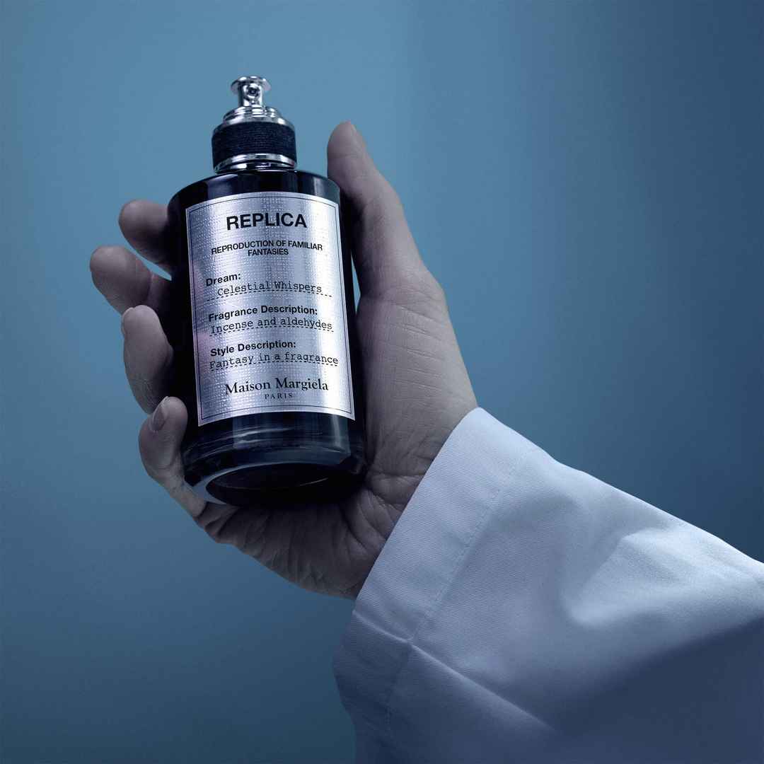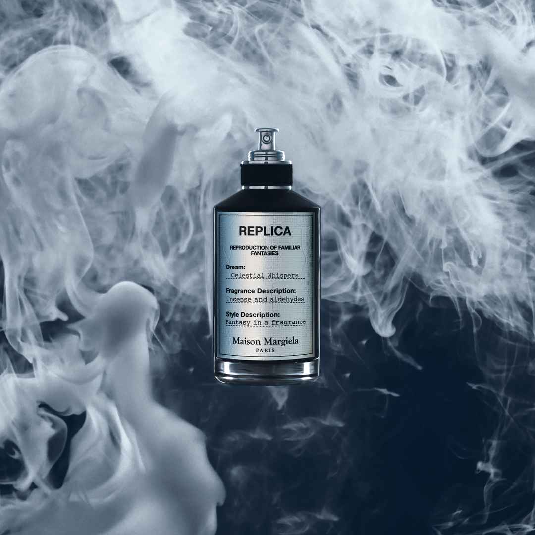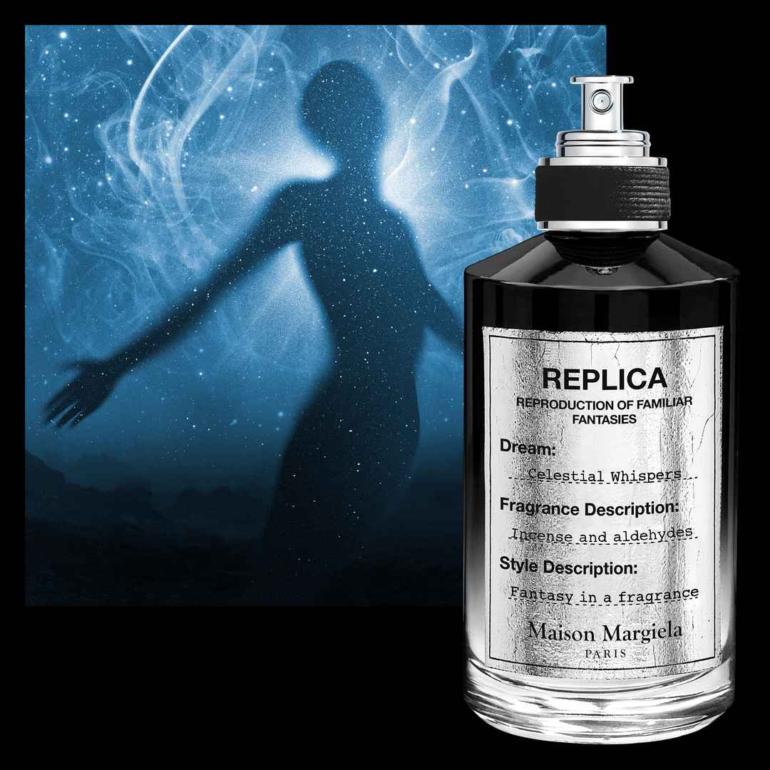 Discover an ethereal, dreamlike experience with Maison Margielas REPLICA Celestial Whispers Eau de Parfum. This unisex fragrance blends spicy, fresh, and smokey notes. A part of the REPLICA Fantasy collection. Crafted by Master Perfumer Daniela Andrier, the heart of this fragrance youll find Celesti...more