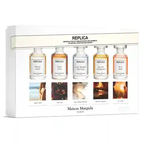 Collect our luxury miniatures Eau de Toilette and relive your favorite scented memories. Discover in this box a selection of Replica fragrances from Maison Margiela inspired by memories and emotions. This 5 x 7ml box is the perfect gift for yourself or someone else. It is composed of Beach Walk, Jaz...more
