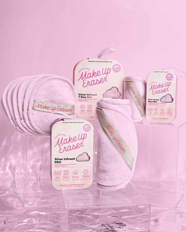 Introducing the Silver-Infused MakeUp Eraser Collection. Perfect for acne & breakout-prone skin, this innovative product combines the power of Pure Silver with advanced exfoliation to give you a clearer, healthier complexion. Infused with Pure Silver, our MakeUp Eraser resists acne-causing bacte...more