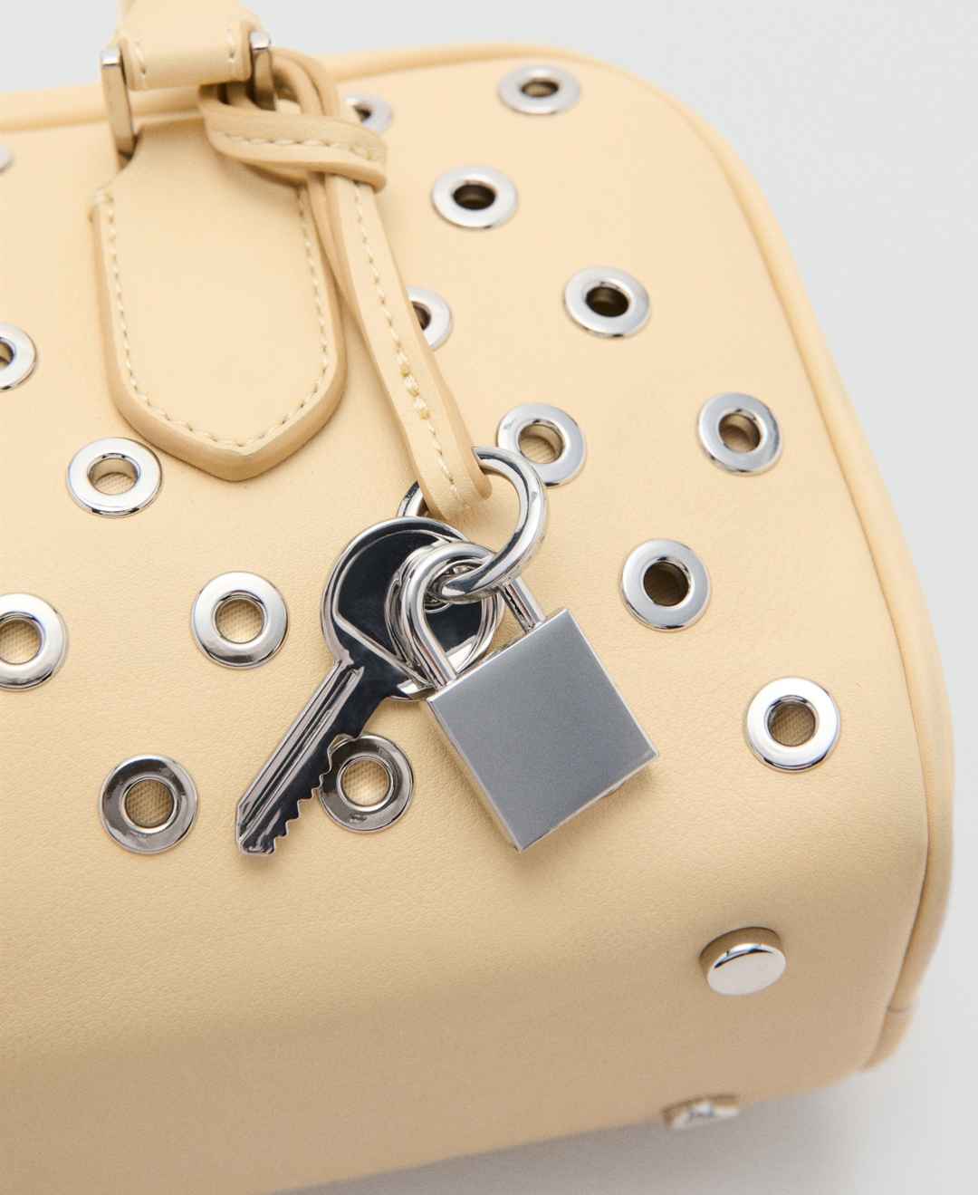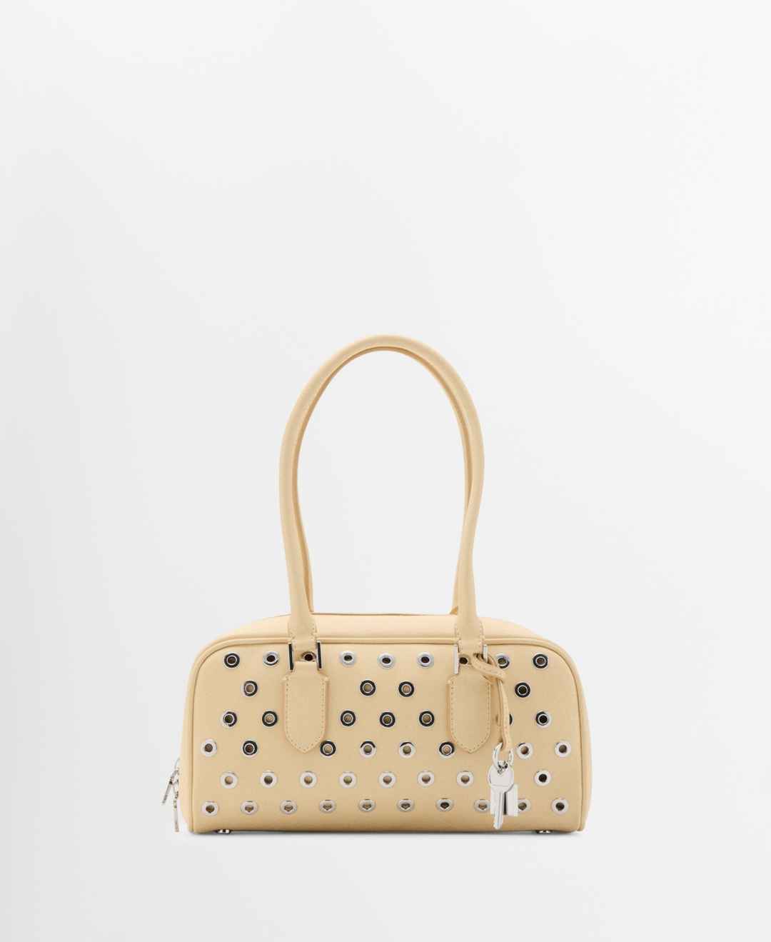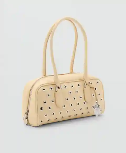 Add statement detail to everyday looks with the Bowling Bag Eyelets from Mango. Crafted from polyurethane, the bag features a medium bowling shape, eyelets detail, two shoulder straps, charm padlock, zip closure, and inner lining. With a history spanning four decades, Mango is one of Europe's leadin...more