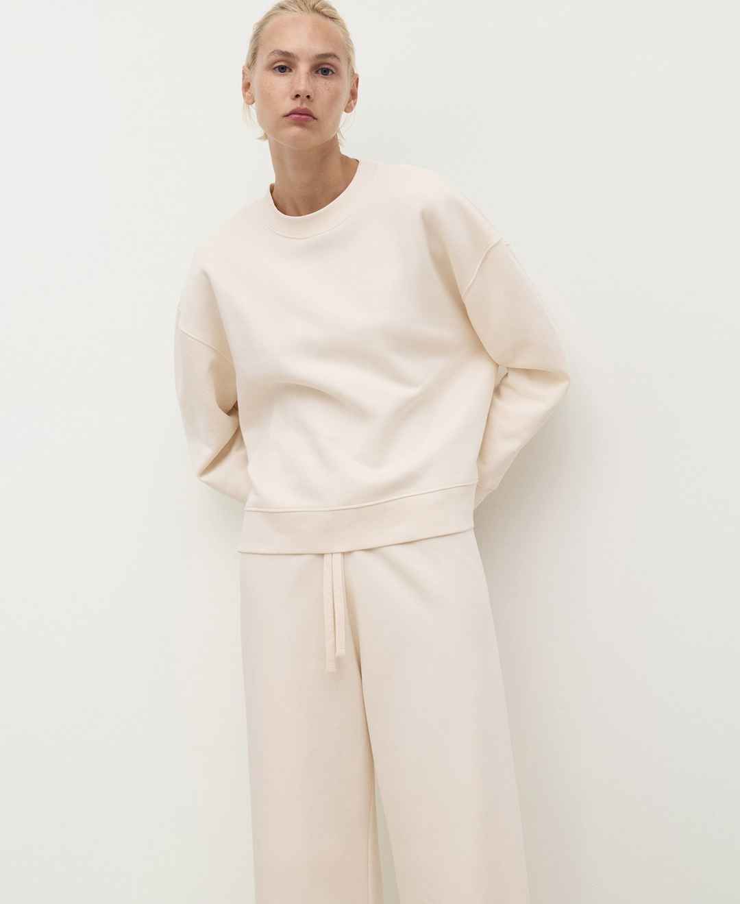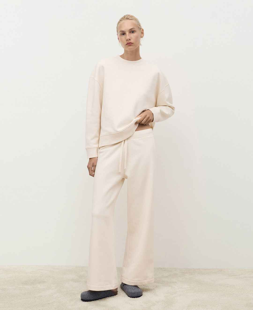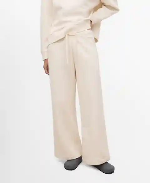Mango Women's Fluid Long Cotton Pants - Vanilla