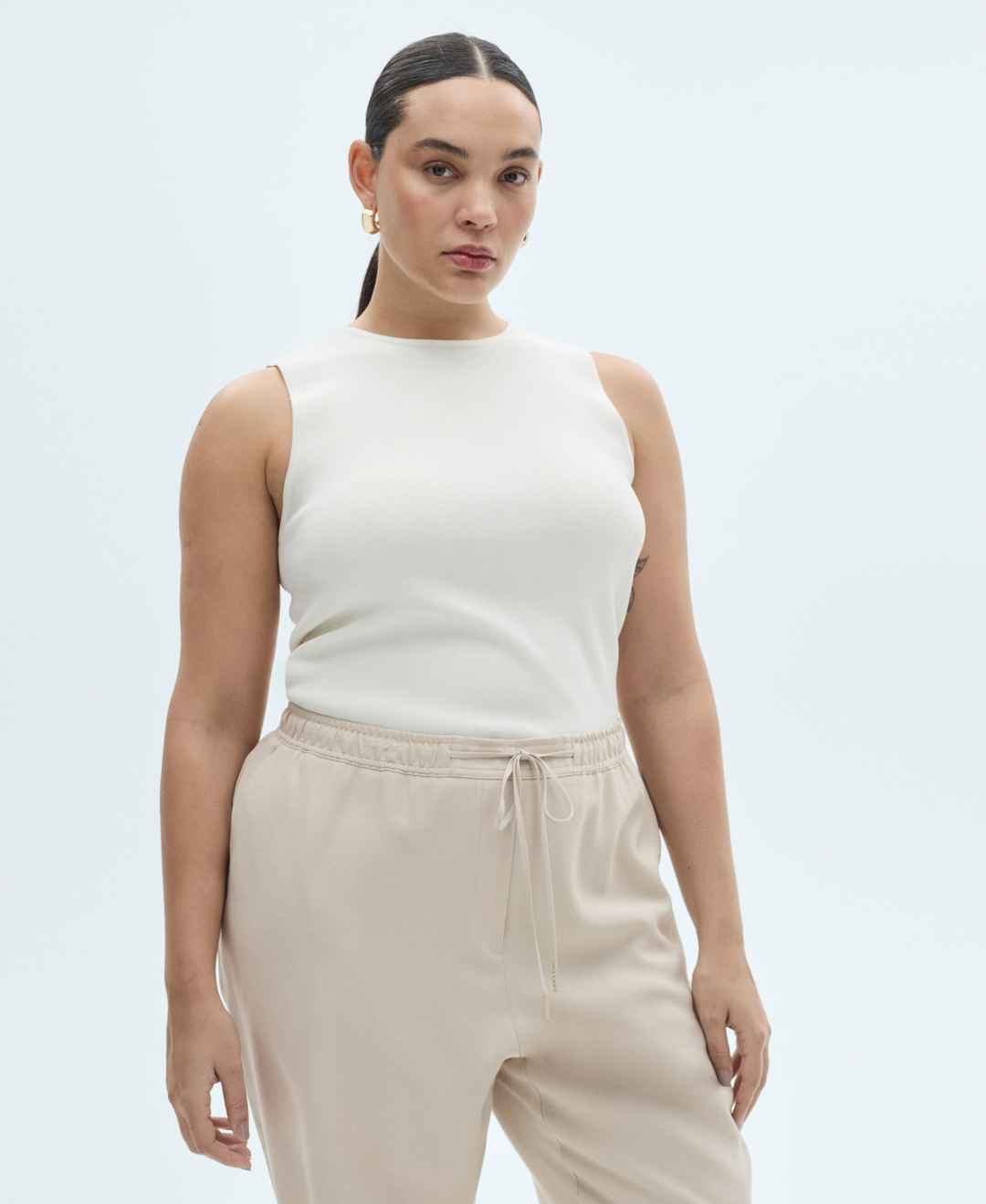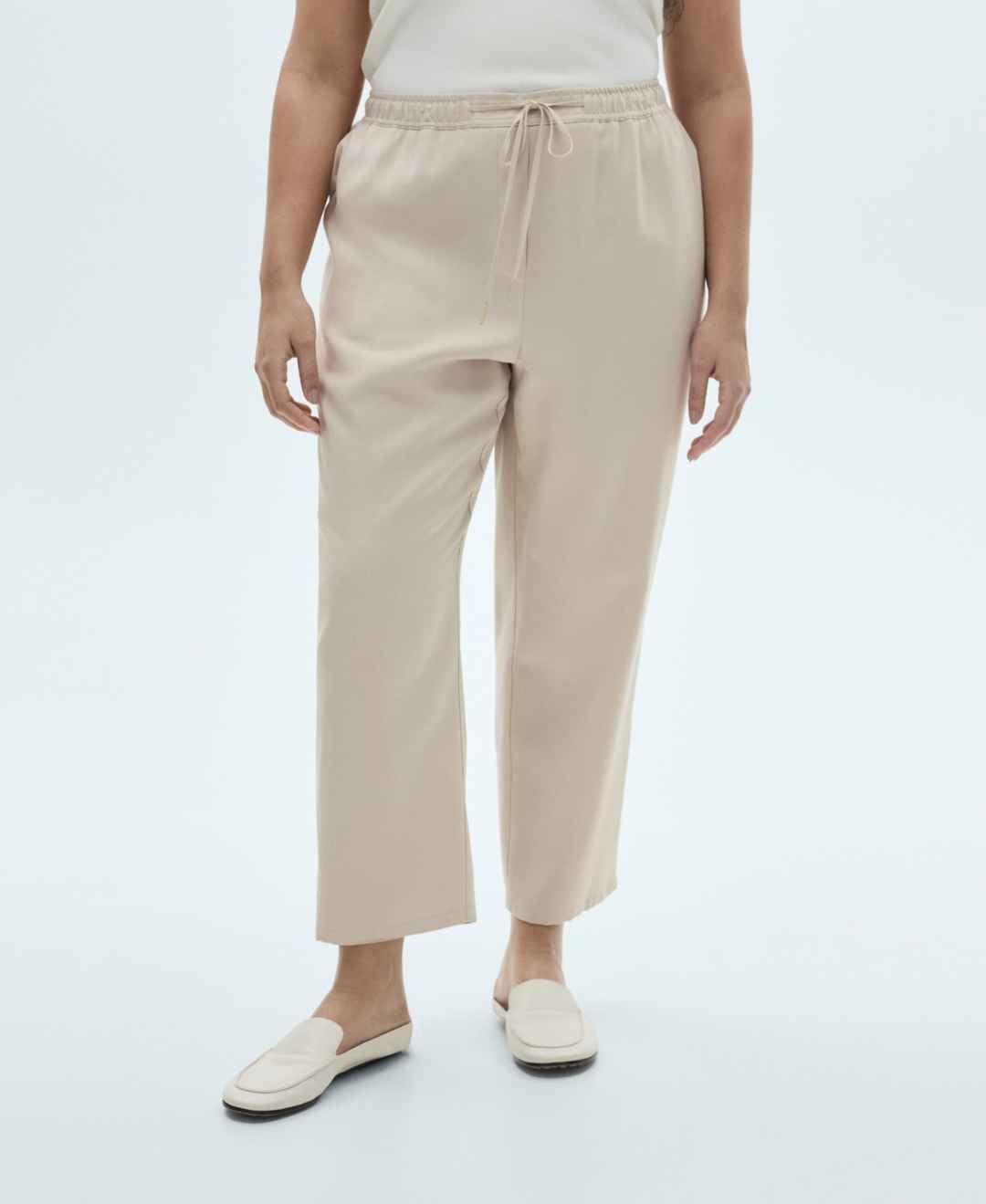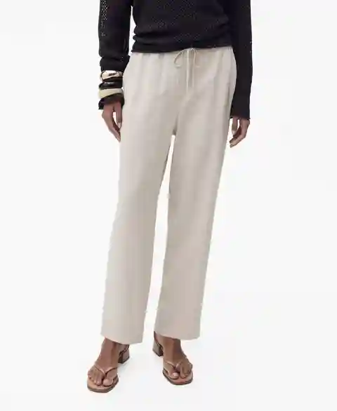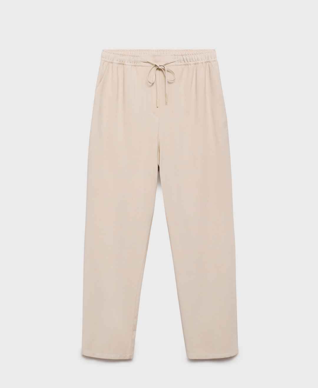 Mango Women's Elastic Waist Flowy Trouser Pants - Beige