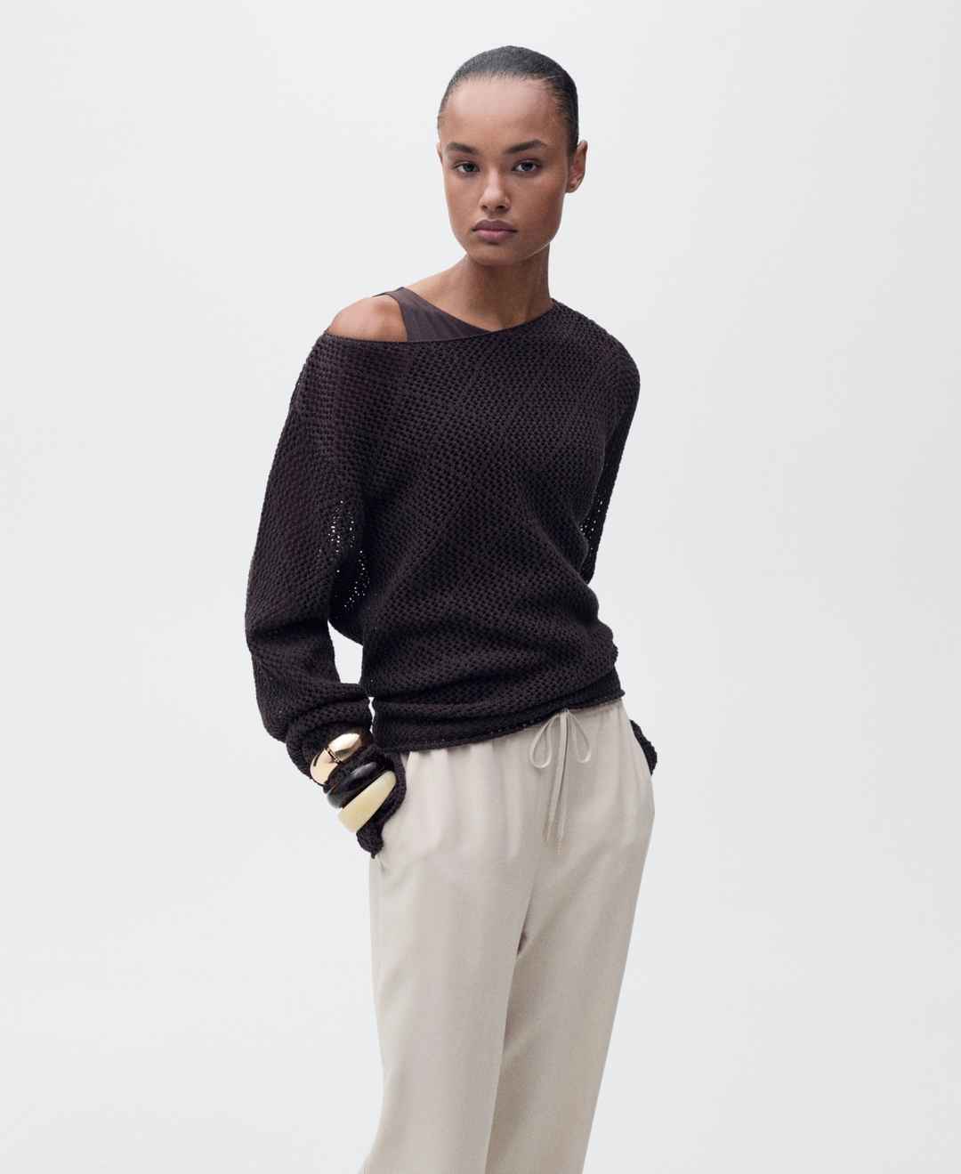 Relaxed elegance meets everyday comfort with the Elastic Waist Flowy Trousers from Mango. These trousers feature long and straight design.