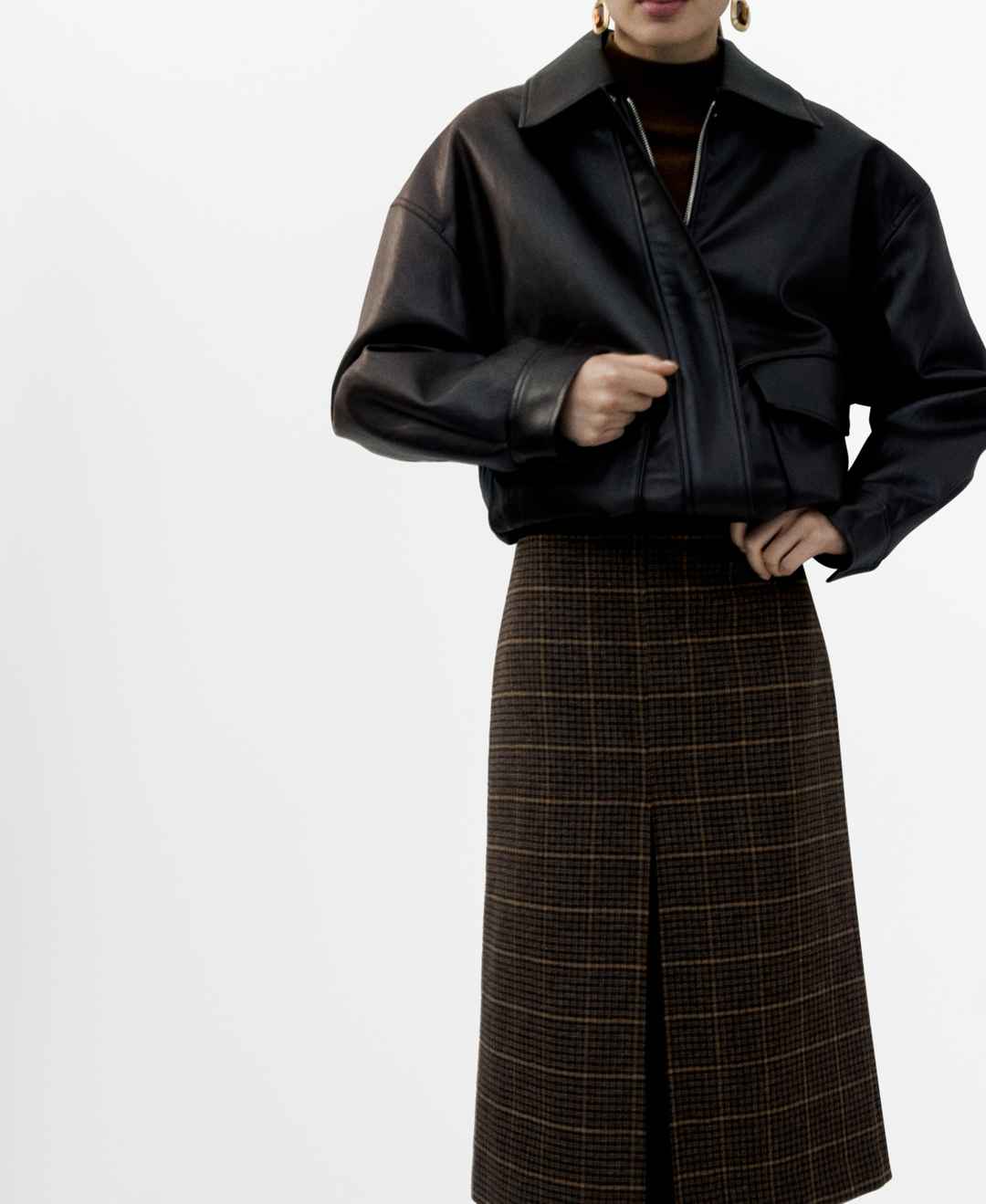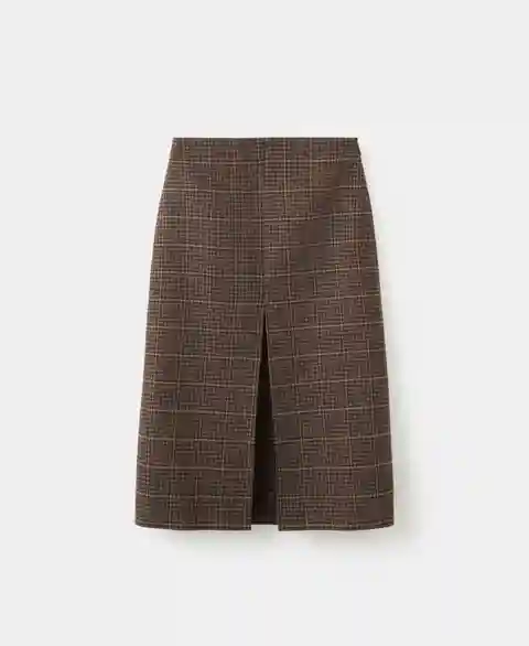 Channel heritage structure in the Wool-Blend Check Midi skirt from Mango. Crafted from wool mix fabric, this midi skirt features a midi cut, tartan print, high waist, and side zip closure.