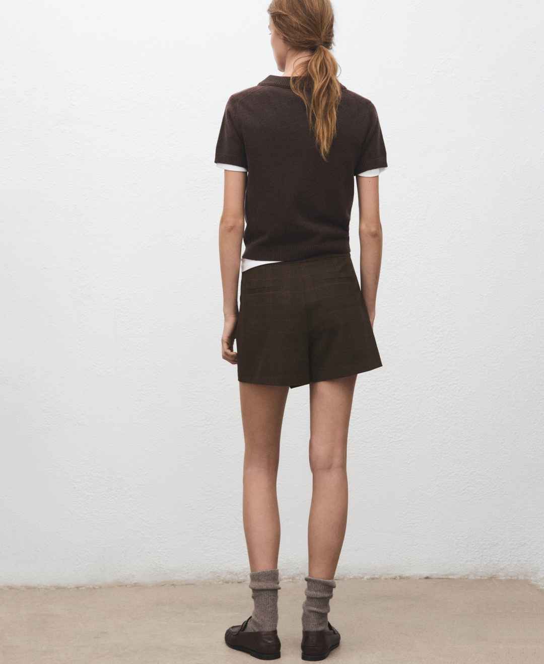 Shift into structured checks with the Checked Asymmetric Skirt from Mango. Made from woven fabric, this skirt features a short asymmetric cut, checked print, high waist, back welt pockets, side zip closure, and inner lining.