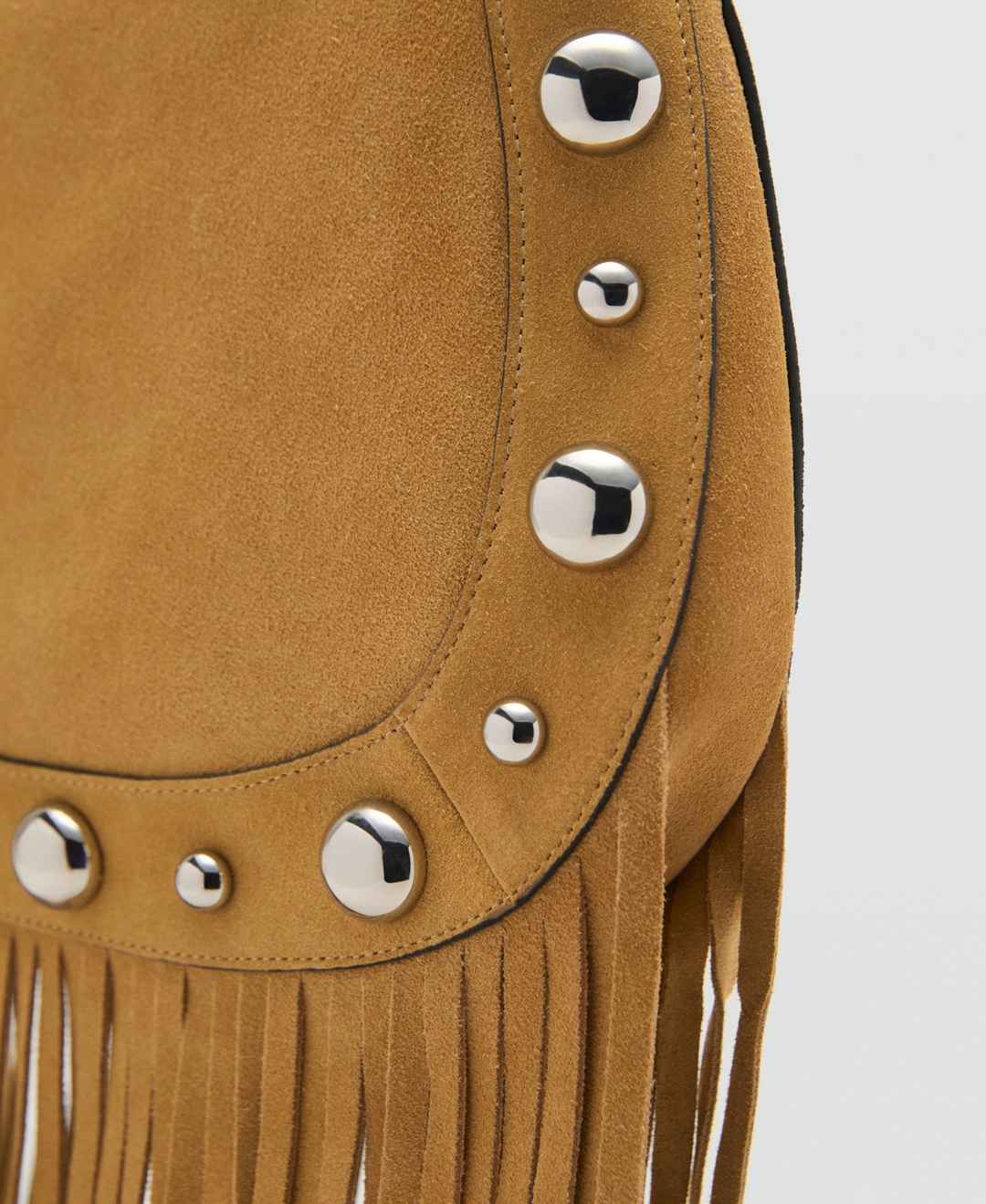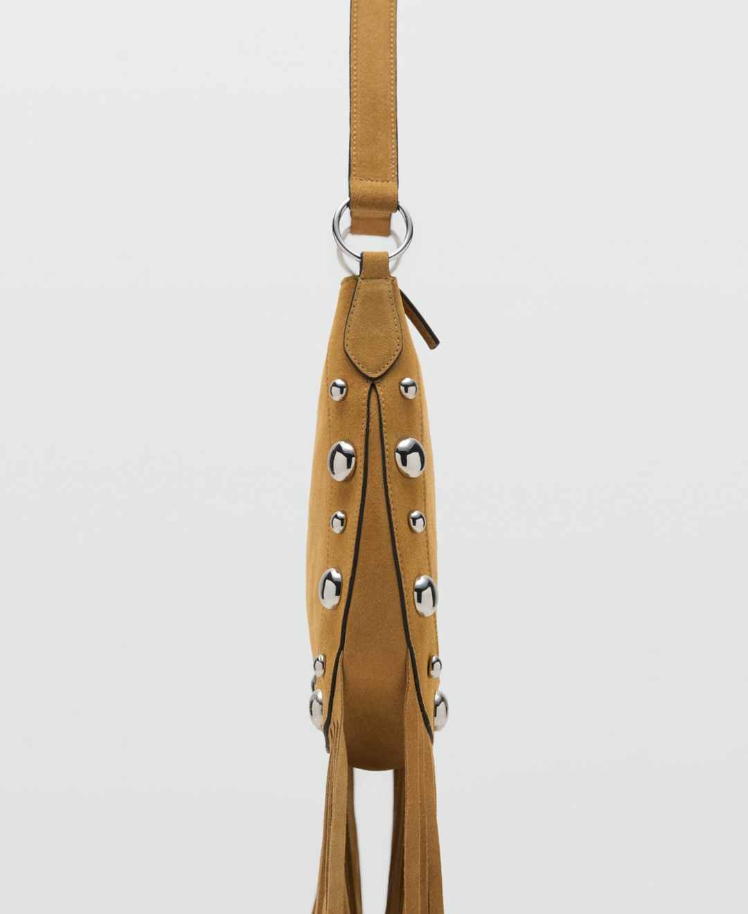 Textured and free-spirited, the Suede Bag with Fringes and Stud Details from Mango lends handcrafted appeal.