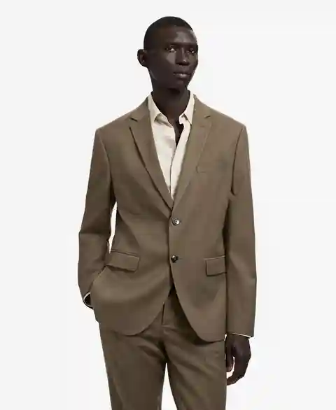 Streamline occasion dressing with the Super Slim-Fit Suit Jacket In Stretch Fabric from Mango. This super slim fit jacket features notch lapels with buttonhole, chest welt pocket, front flap pockets, interior pocket, inner lining, long sleeves with buttoned cuffs, and front button closure.