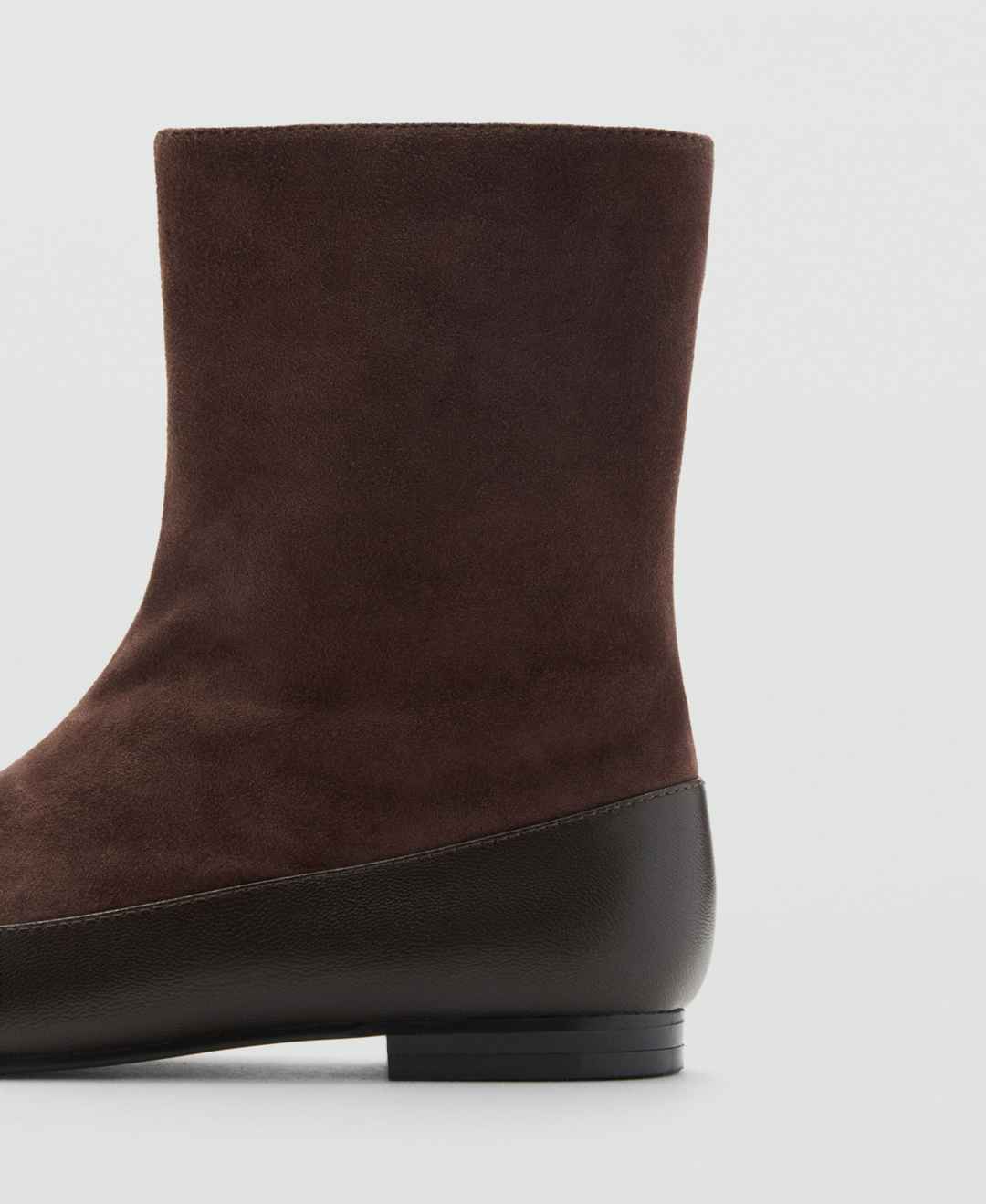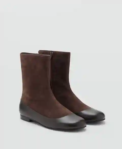 Step into versatility with the Combined Leather Ankle Boot from Mango. Made from goat-skin leather, it features a combined construction with a flat sole.