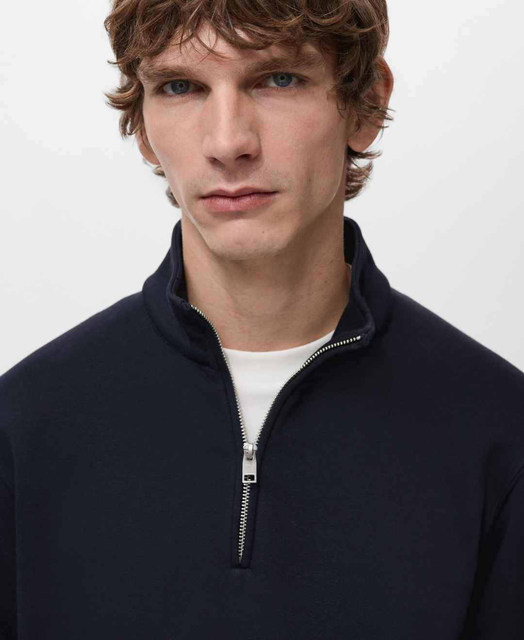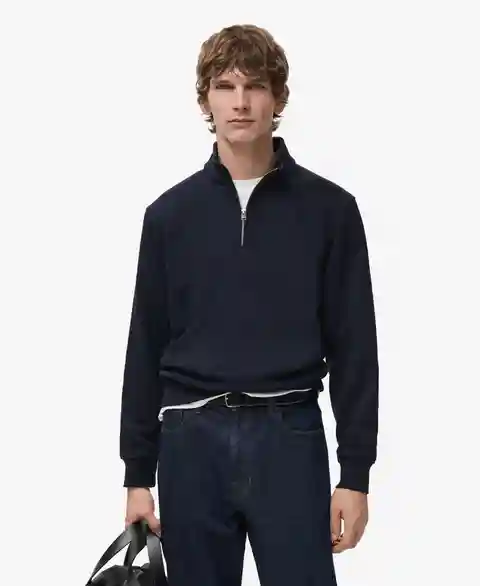 Balanced proportions shape the Regular-Fit Cotton Sweatshirt with Zip from Mango. Made from cotton blend fabric, this regular fit sweatshirt features Perkins collar with zip closure, ribbed cuffs and hem and straight hem.