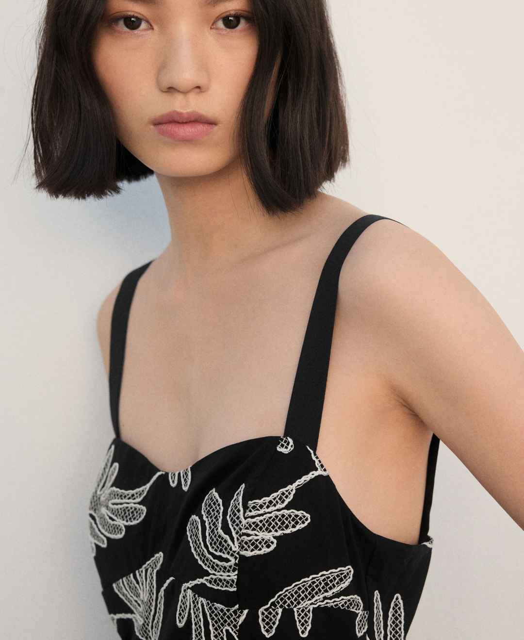 Bring artisanal detail to occasion wear with Floral Embroidery Dress from Mango. Made from cotton fabric, this midi dress features A-line shape, embroidered floral details, low neckline, sleeveless cut, wide straps, back zip fastening, and inner lining. With a history spanning four decades, Mango is...more